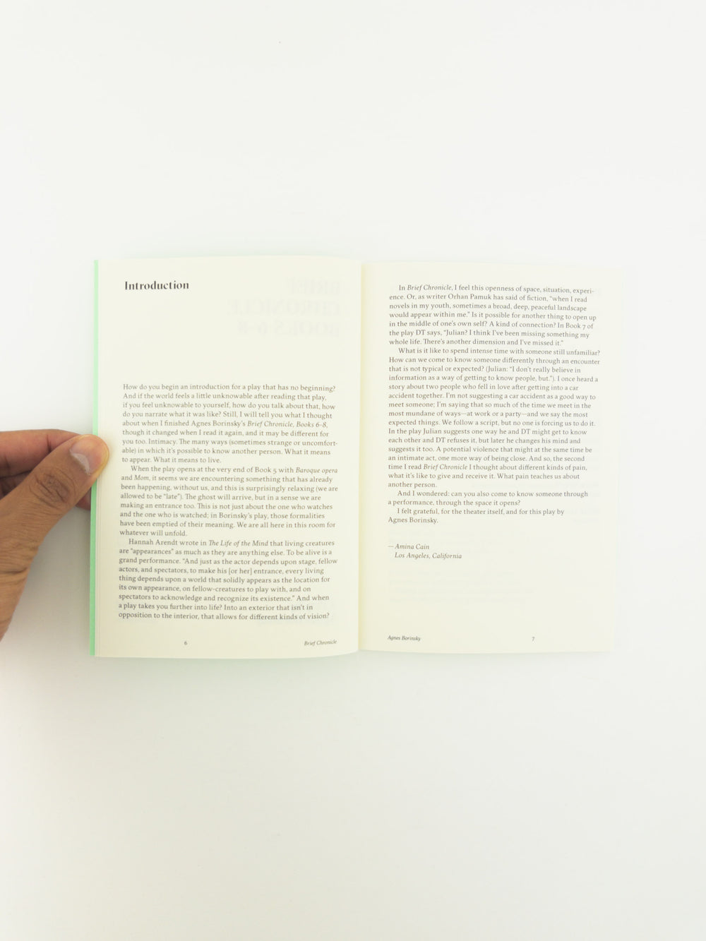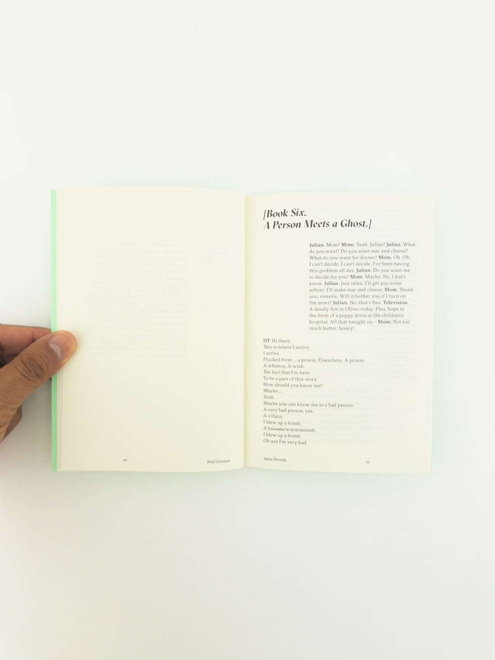 In Brief Chronicle, Books 6–8, Agnes Borinsky delivers a play in a single column. A history play that grounds epic themes—longing, violence and imperialism, and the bond between mother and son—in the quiet ways we talk.