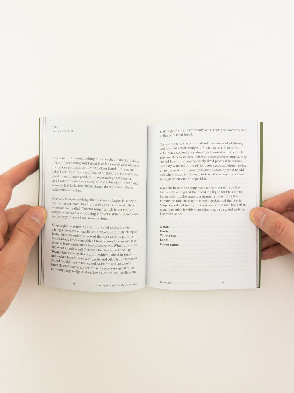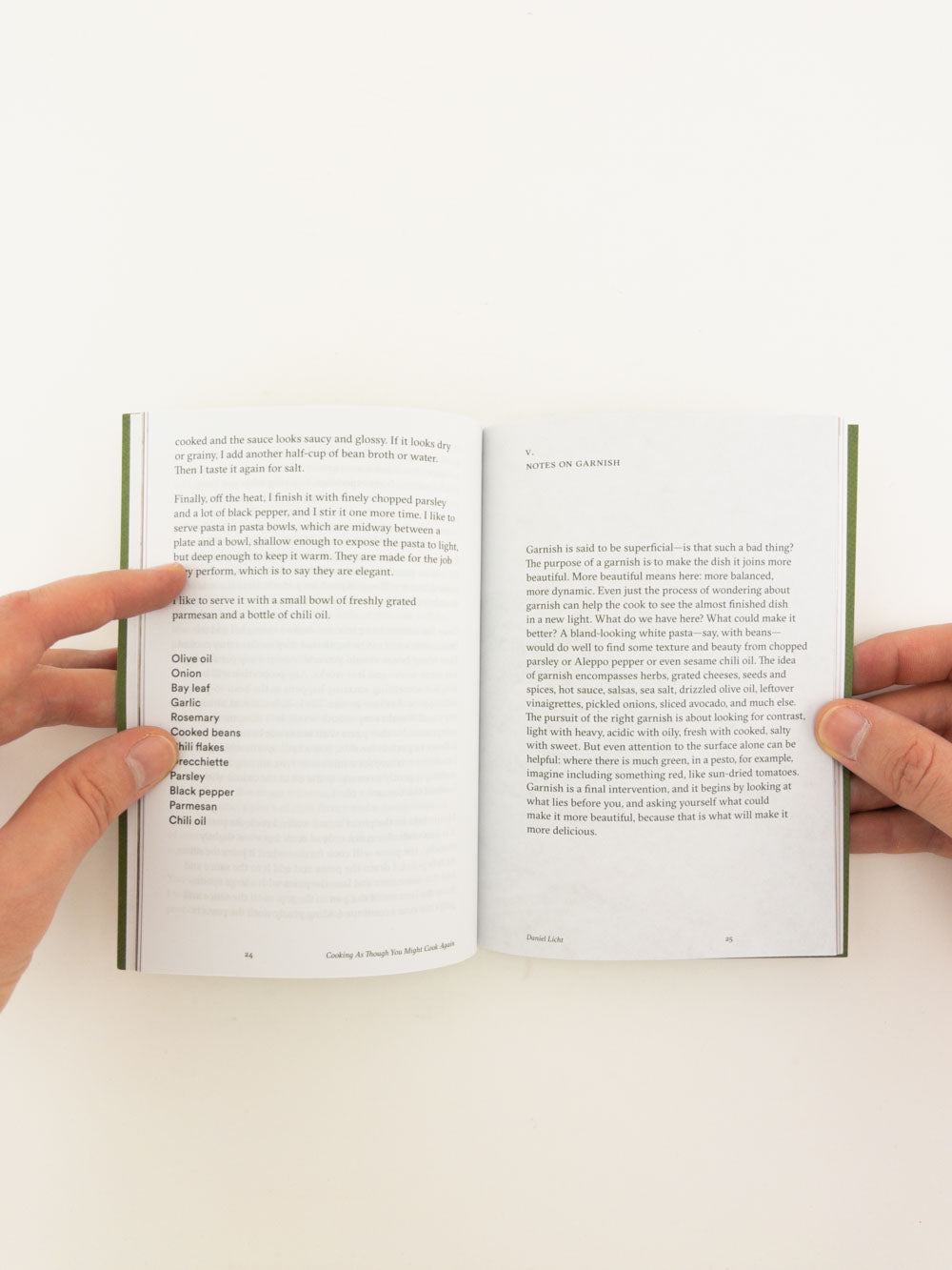 Cooking As Though You Might Cook Again invites us to cook with our senses and to work with the passage of time. Licht’s lyrical recipes turn our attention away from strict measurements and towards the sights and smells of our own pantries, our own fridges, and our own imaginations. A new book that feels oddly like a familiar classic. A reminder of the pleasure and the importance of living with what we have.