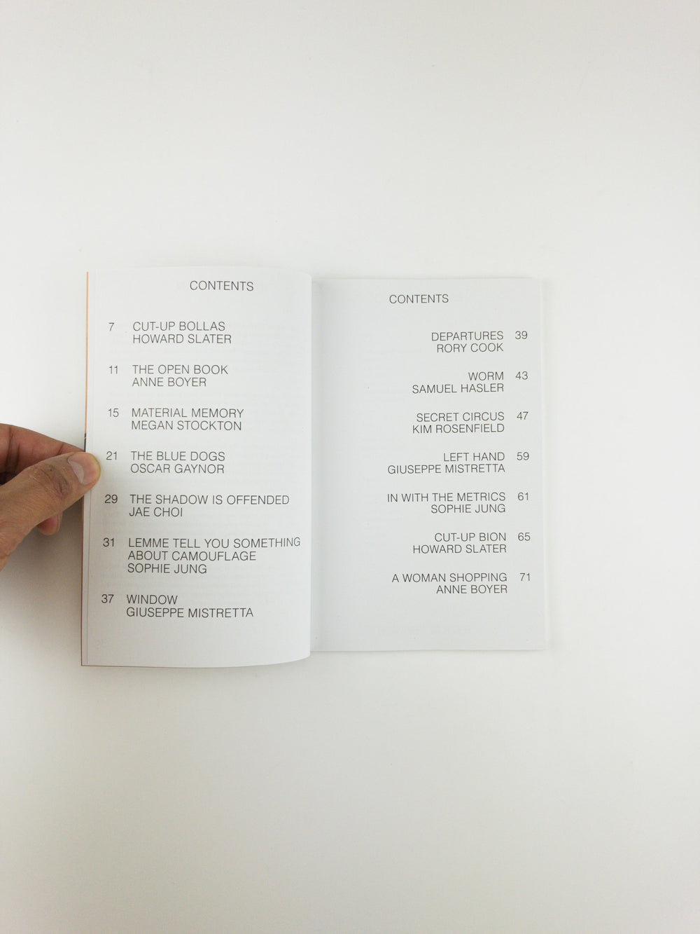 We welcome contributions from Anne Boyer, Jae Choi, Rory Cook, Oscar Gaynor, Samuel Hasler, Sophie Jung, Giuseppe Mistretta, Kim Rosenfield, Howard Slater and Megan Stockton