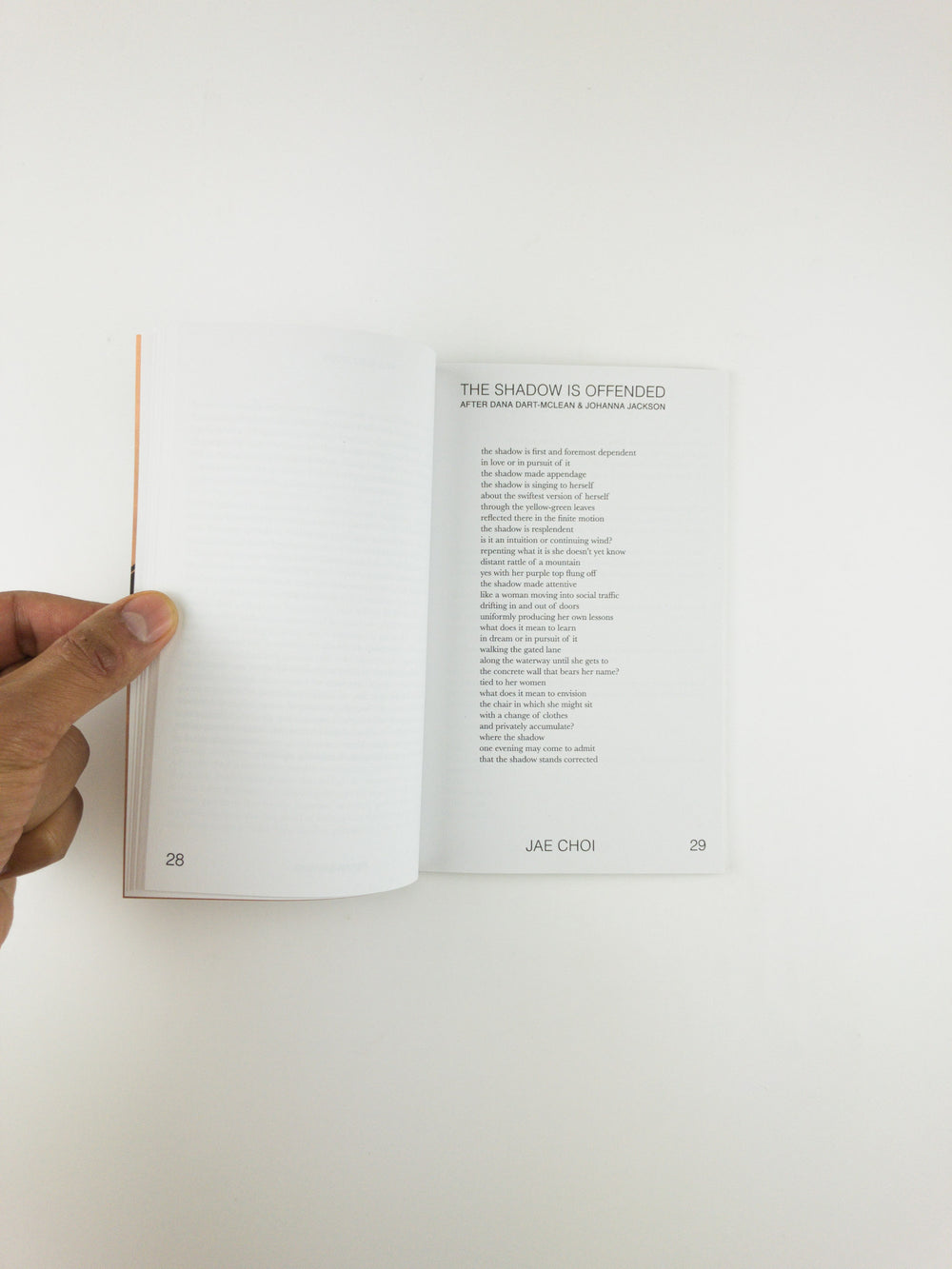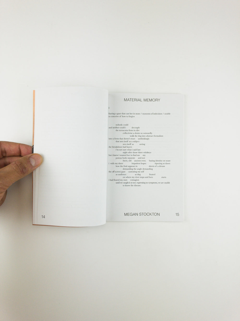 Points of departure for these strands take on board the active unfurling of both reading and writing as practices and let them sit side by side. As such, the collection stakes its interest in deferred voices, proximities of experience and the slow culmination of ideas through fragments, notes, sentiments, and the acts of attention and care.