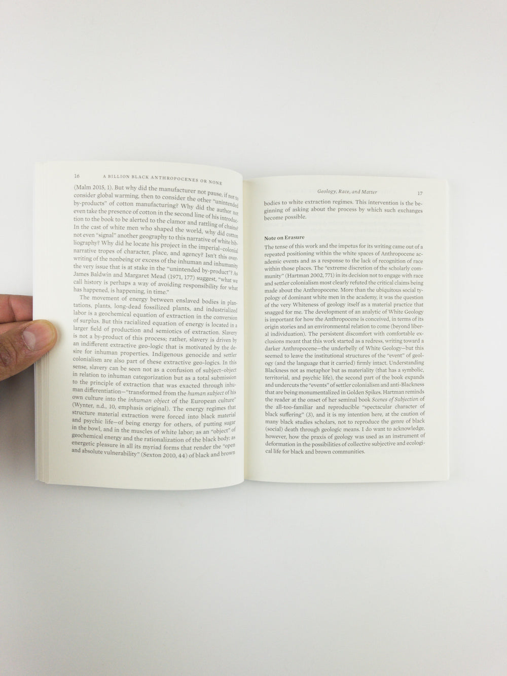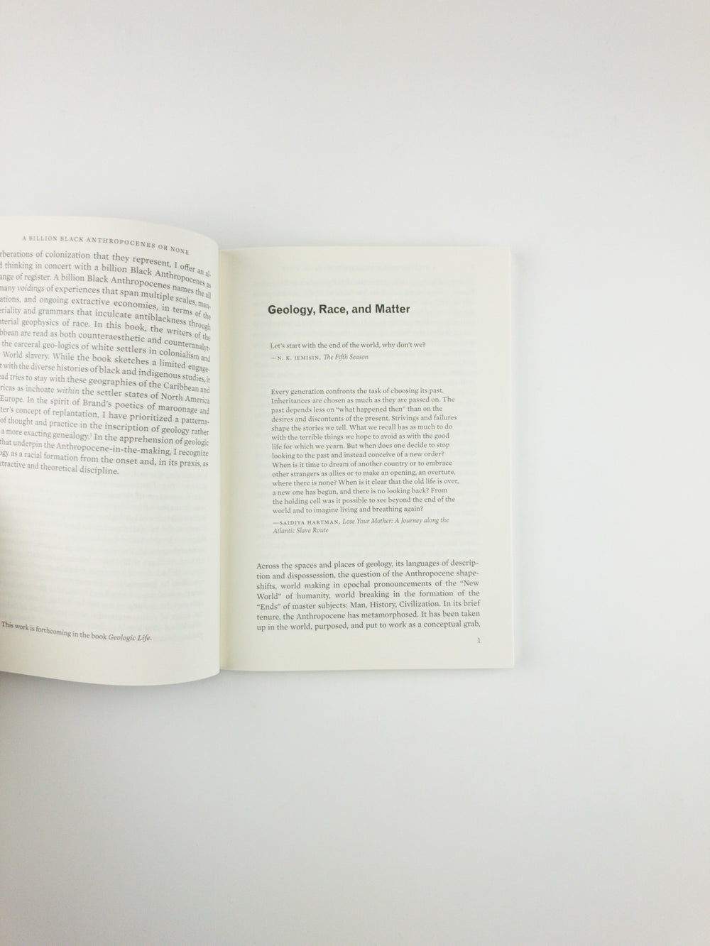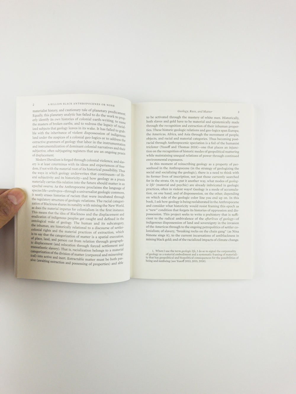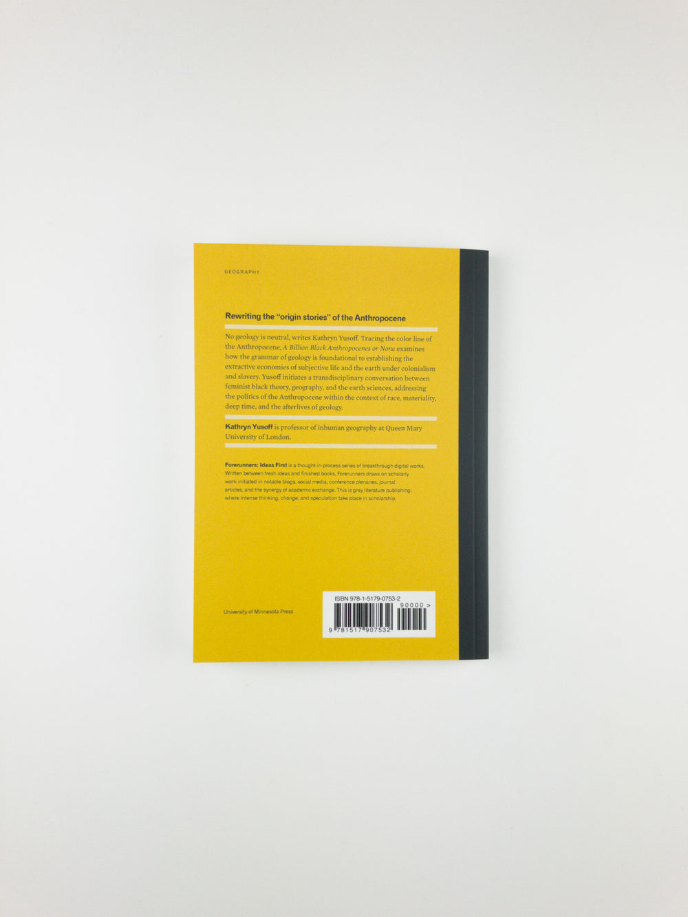 No geology is neutral, writes Kathryn Yusoff. Tracing the color line of the Anthropocene, A Billion Black Anthropocenes or None examines how the grammar of geology is foundational to establishing the extractive economies of subjective life and the earth under colonialism and slavery. Yusoff initiates a transdisciplinary conversation between black feminist theory, geography, and the earth sciences, addressing the politics of the Anthropocene within the context of race, materiality, deep time, and the afterlives of geology.