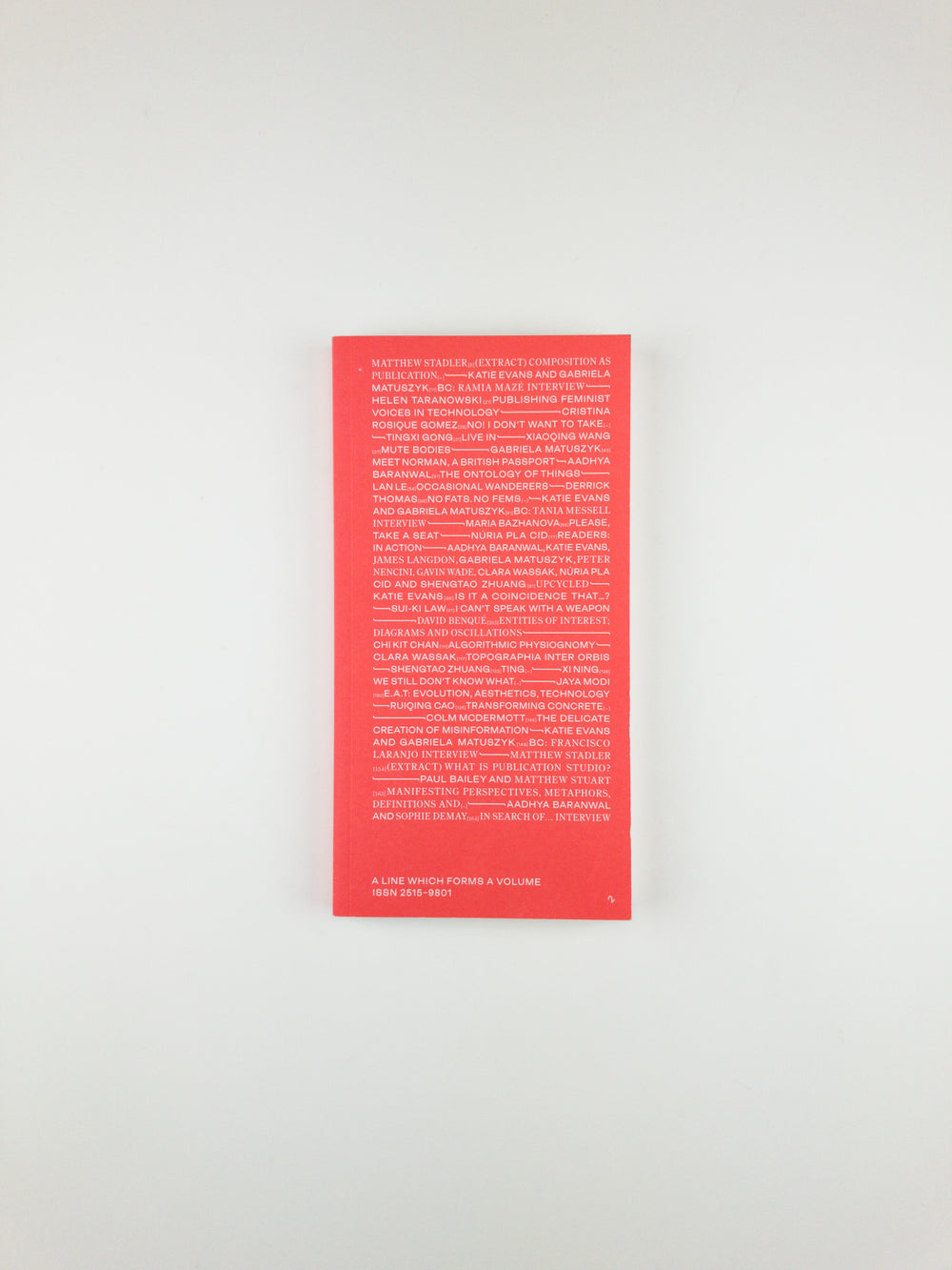 The second edition of A Line Which Forms a Volume is a critical reader of graphic design-led research that has been edited, written, designed, and published by participants of the MA Graphic Media Design (MAGMD) course at London College of Communication (LCC). Working with the concept of “networks in action,” this publication connects students with established practices. Built along an axis of research, inquiry, and practice, all continuously and simultaneously feeding into each other, the lines of design inquiry published in this issue connect to form a multidirectional network. A Line Which Forms a Volume takes its name from a subheading in the 1996 essay “The Book as Object,” by Michel Butor. In this text, Butor writes that threads of thought and speech must be set into lines, lines divided into columns, and columns stacked along a third axis of depth to form a volume. The notion of “volume” as a publication, as well as the space that something occupies and as a quality of something audible, lends itself to the endeavor of A Line Which Forms a Volume – to make graphic design research public.
