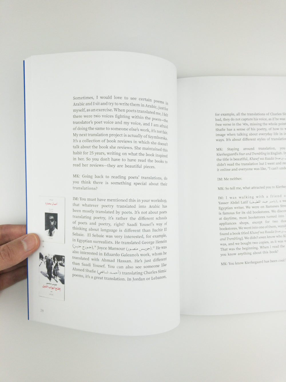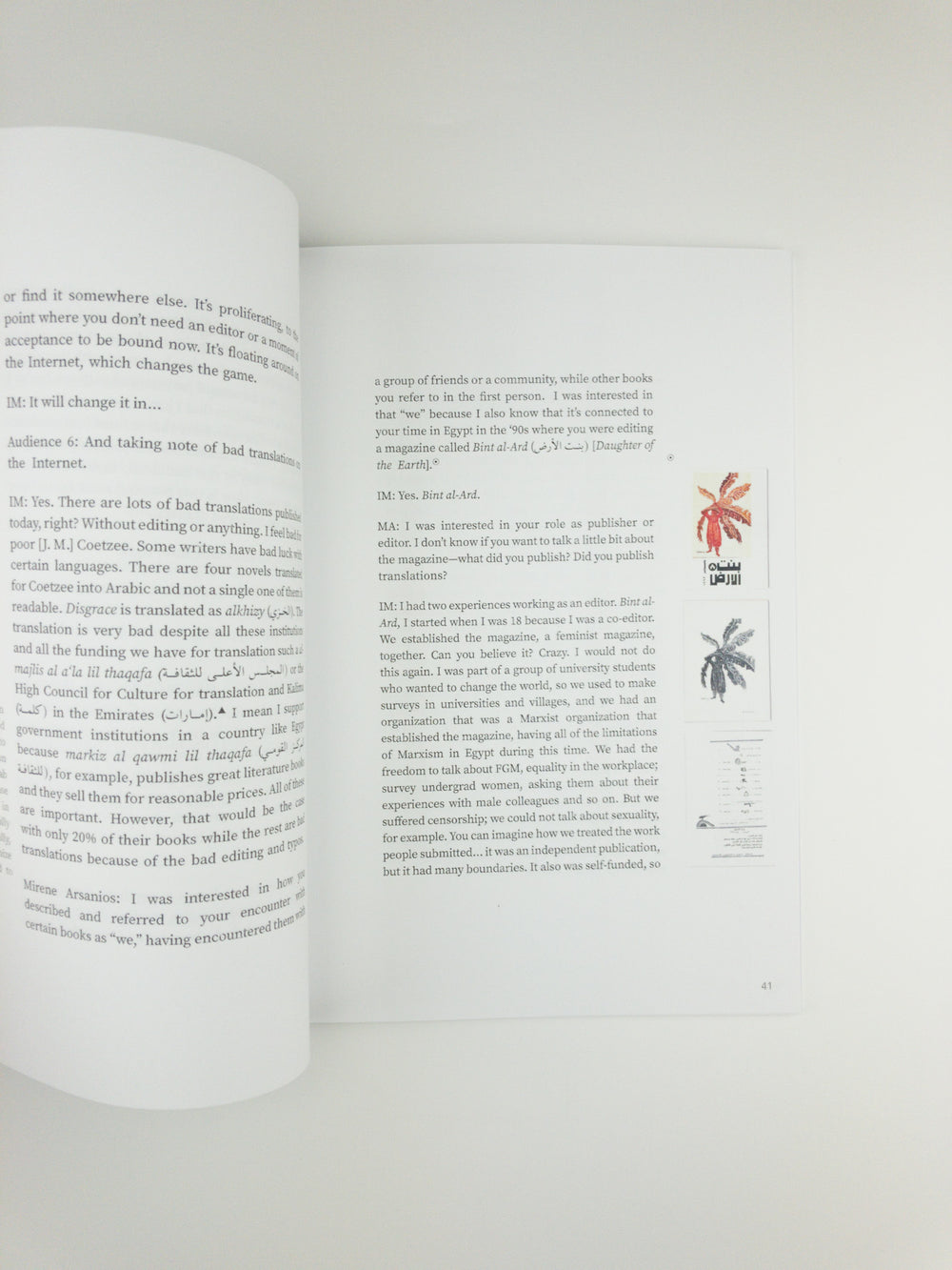 Among a Sea of Influences documents a series of workshops and conversations hosted by Wendy’s Subway and organized by English-Arabic bilingual magazine Makzhin editor Mirene Arsanios on questions of formative literary influences. Three female Arab writers were invited to choose and discuss ten books that shaped their understanding of poetry and translation. Notwithstanding the difficulty of the task, Marwa Helal, Mona Kareem, and Iman Mersal played along, selecting—among a sea of influences—authors and/or translators whose works were key to their own practice, and to their embodied understanding of what it means to write in Arabic from a female perspective. Asking what kind of writings are/were available to them, and which books or translations unseated their understanding of the world, Helal, Kareem, and Mersal discuss writing within the diaspora and across borders, radical publishing and translation networks, cultural and linguistic translation, vernacular language as resistance, and more.