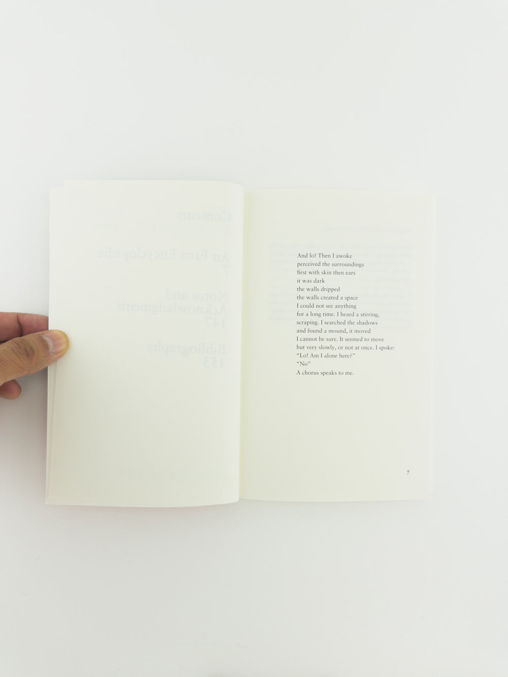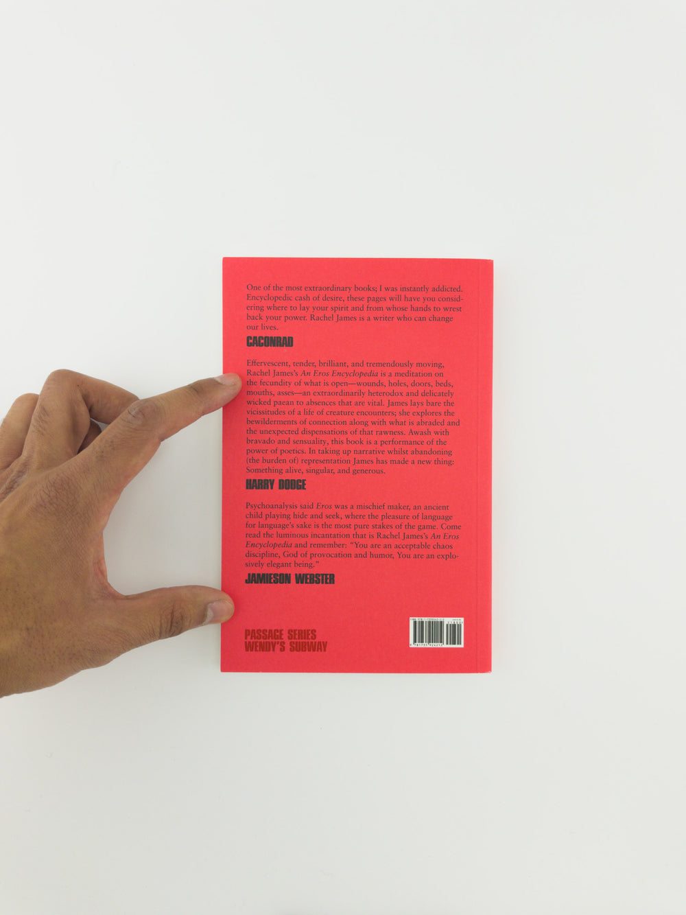 To want to reveal; to want to reveal enough; to desire; to desire in the right way, the right amount: in her debut book, Rachel James narrates the desiring subject’s nuanced and entangled intimacies with histories of power. How, in other words, under patriarchy, against misogyny, within capitalist strictures, is knowledge shaped, contained, and transferred? Tracing traditions of theater, pedagogy, and faith, An Eros Encyclopedia offers up desire and the attunement to its many objects as the atmosphere of a life—a method to navigate, perceive, and relate against the illusion of separation.