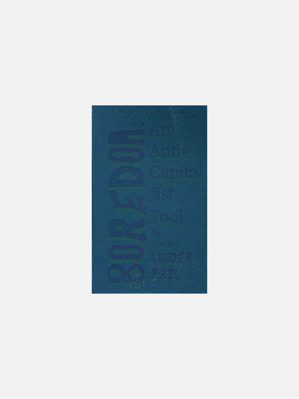 Boredom: An Anti-Capital-ist Tool is a new essay and publication by GenderFail founder Be Oakley. This essay is broken up into fragments of thoughts about boredom broadly centered around boredom as a revolutionary and anti-capitalist tool. These are divided into the following topics: