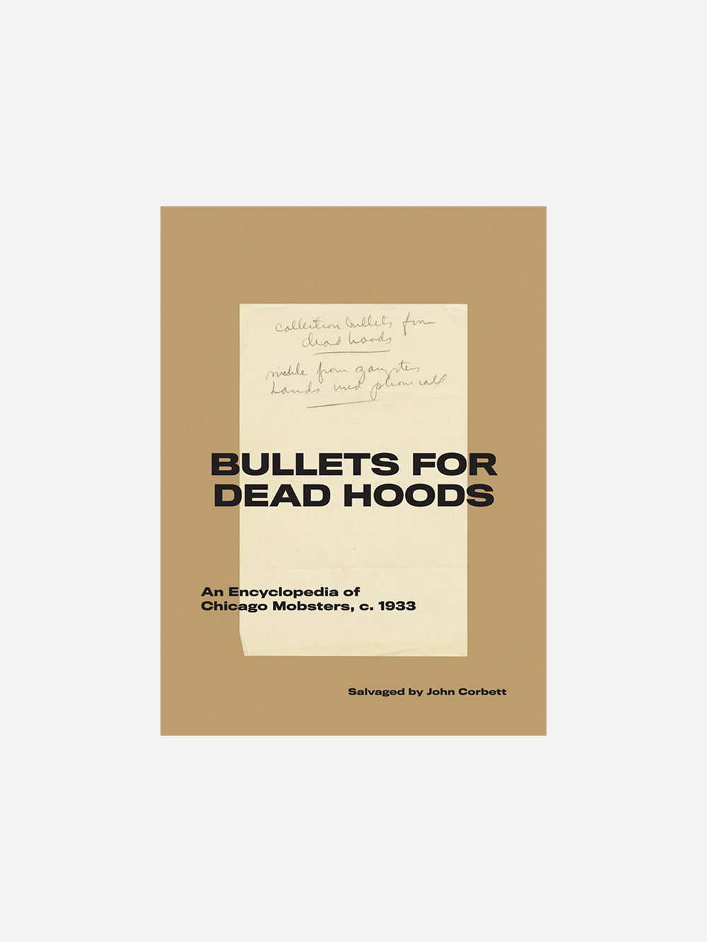 Presented here in facsimile in order to capture the dossier’s distinctive materiality, Bullets for Dead Hoods: An Encyclopedia of Chicago Mobsters, c. 1933 offers a detailed rundown on the Chicago Outfit through 140 noir character sketches, which range from the infamous—Al Capone, George “Bugs” Moran, the Everleigh Sisters—to their lesser known aiders and abettors. Whoever dared to put this testament together was clearly someone with access to information—a cop? a reporter? a bitter mafioso?—but who would’ve risked sharing these particulars, and why, is a mystery that will likely never be solved.
