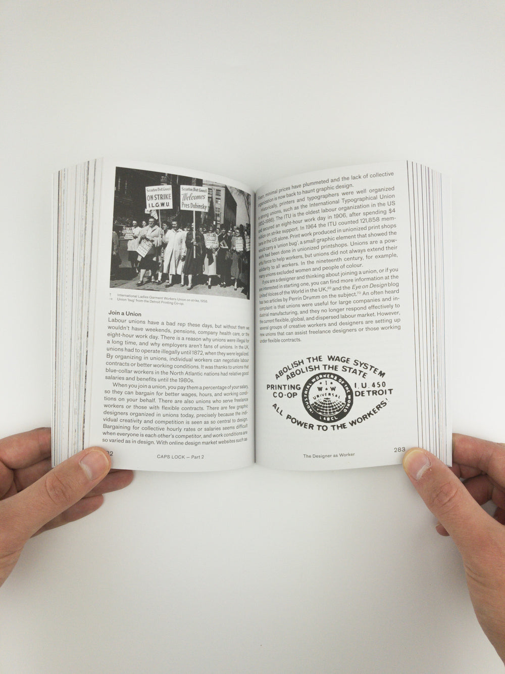 CAPS LOCK uses clear language and striking visual examples to show how graphic design and capitalism are inextricably linked. The book contains many case studies of designed objects related to capitalist societies and cultures, and also examines how the education and professional practice of (graphic) designers supports the market economy and how design practice is caught within that very system.