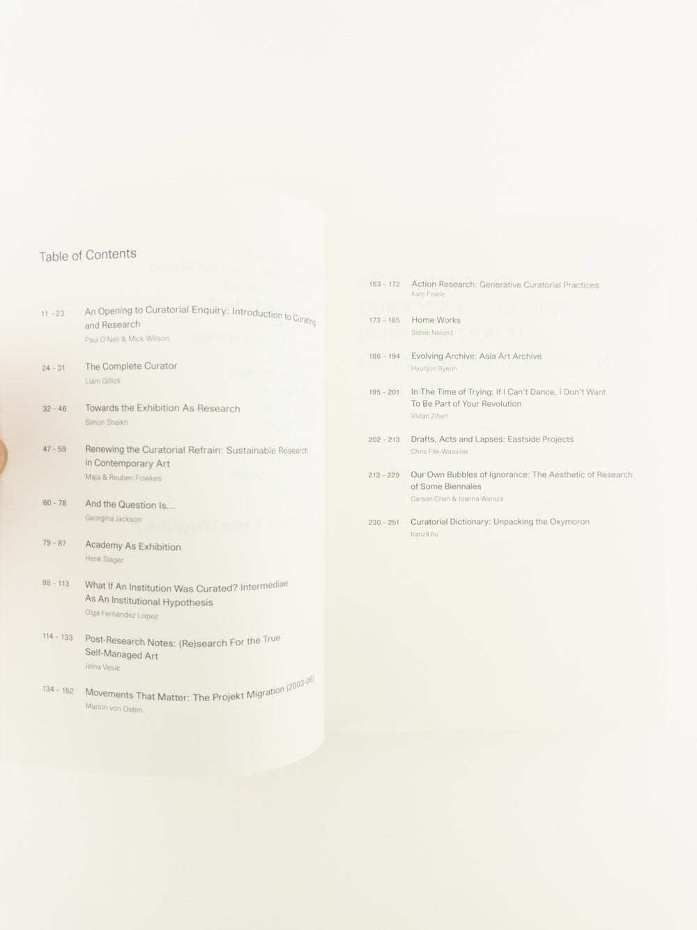 This anthology of newly commissioned texts presents a series of detailed examples of the different kinds of knowledge production that have recently emerged within the field of curatorial practice. The first volume of its kind to provide an overview of the theme of research within contemporary curating, Curating Research marks a new phase in developments of the profession globally. Consisting of case studies and contextual analyses by curators, artists, critics and academics, this publication will be an indispensable resource for all those interested in the current state of art, with particular regard to curating.