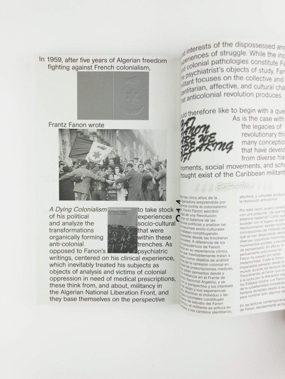 Dolce Stil Criollo’s fourth issue is about “border theatrics.” It dramatizes the ways interpretation and performance create, destroy, sustain, and even entertain a border. The issue features a play, two texts on Fanon, Arabic and Portuguese translations of Wendy Trevino's Brazilian Is Not a Race, poems by Pedro Neves Marques, photographs by the late Barbara Ess, and more.