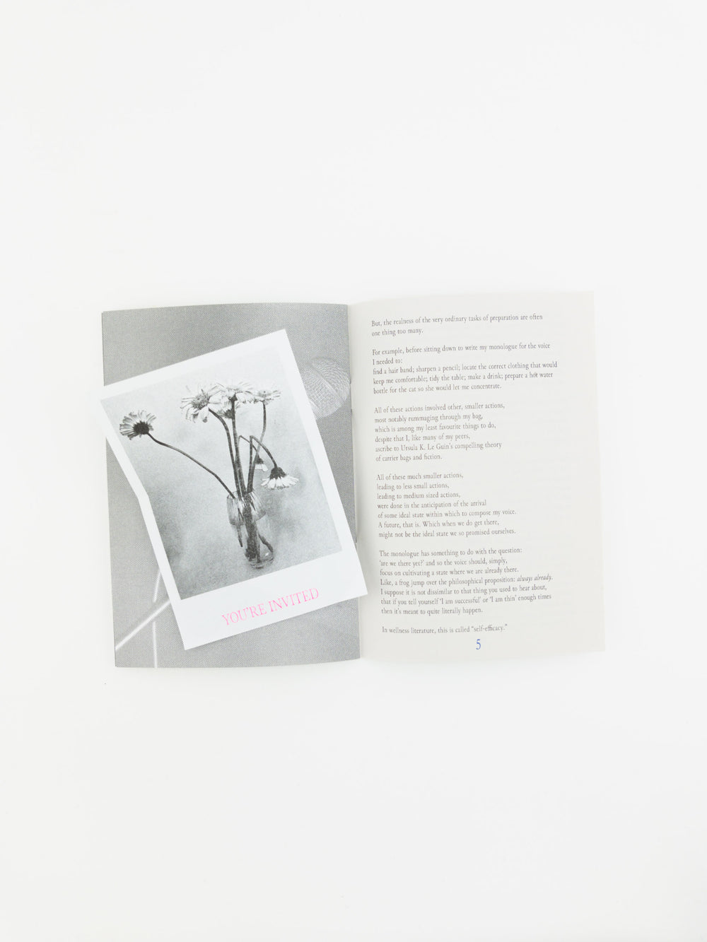 A monologue (of sorts) writing itself into being as it references its own performative clichés, passé impulses and the staging of an artwork in the world as it is or could be.