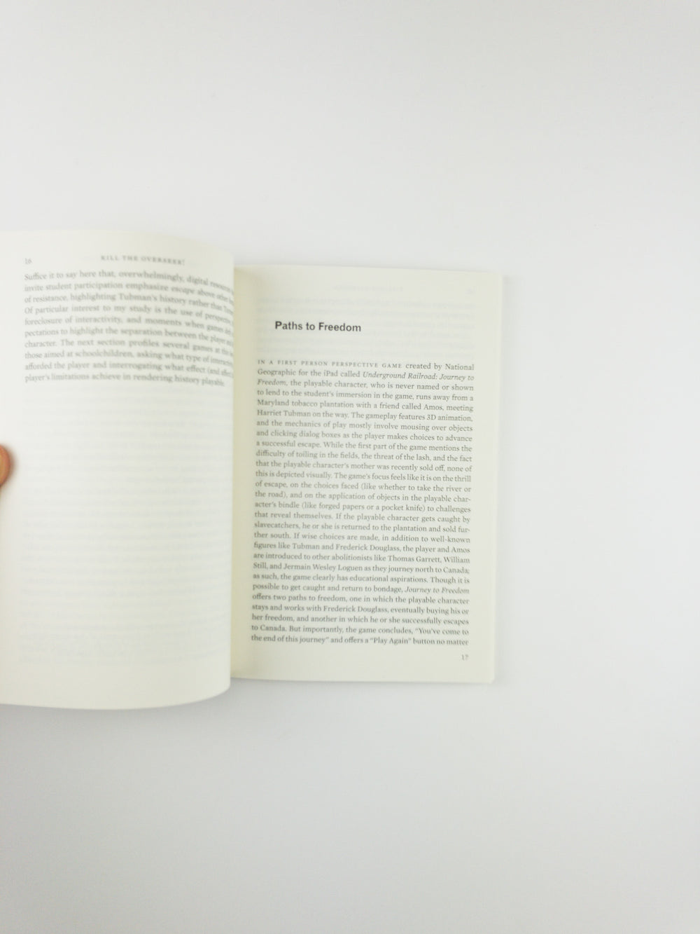Kill the Overseer! profiles and problematizes digital games that depict Atlantic slavery and “gamify” slave resistance. In videogames emphasizing plantation labor, the player may choose to commit small acts of resistance like tool-breaking or working slowly. Others dramatically stage the slave’s choice to flee enslavement and journey northward, and some depict outright violent revolt against the master and his apparatus. In this work, Sarah Juliet Lauro questions whether the reduction of a historical enslaved person to a digital commodity in games such as Mission US, Assassin’s Creed, and Freedom Cry ought to trouble us as a further commodification of slavery’s victims, or whether these interactive experiences offer an empowering commemoration of the history of slave resistance.