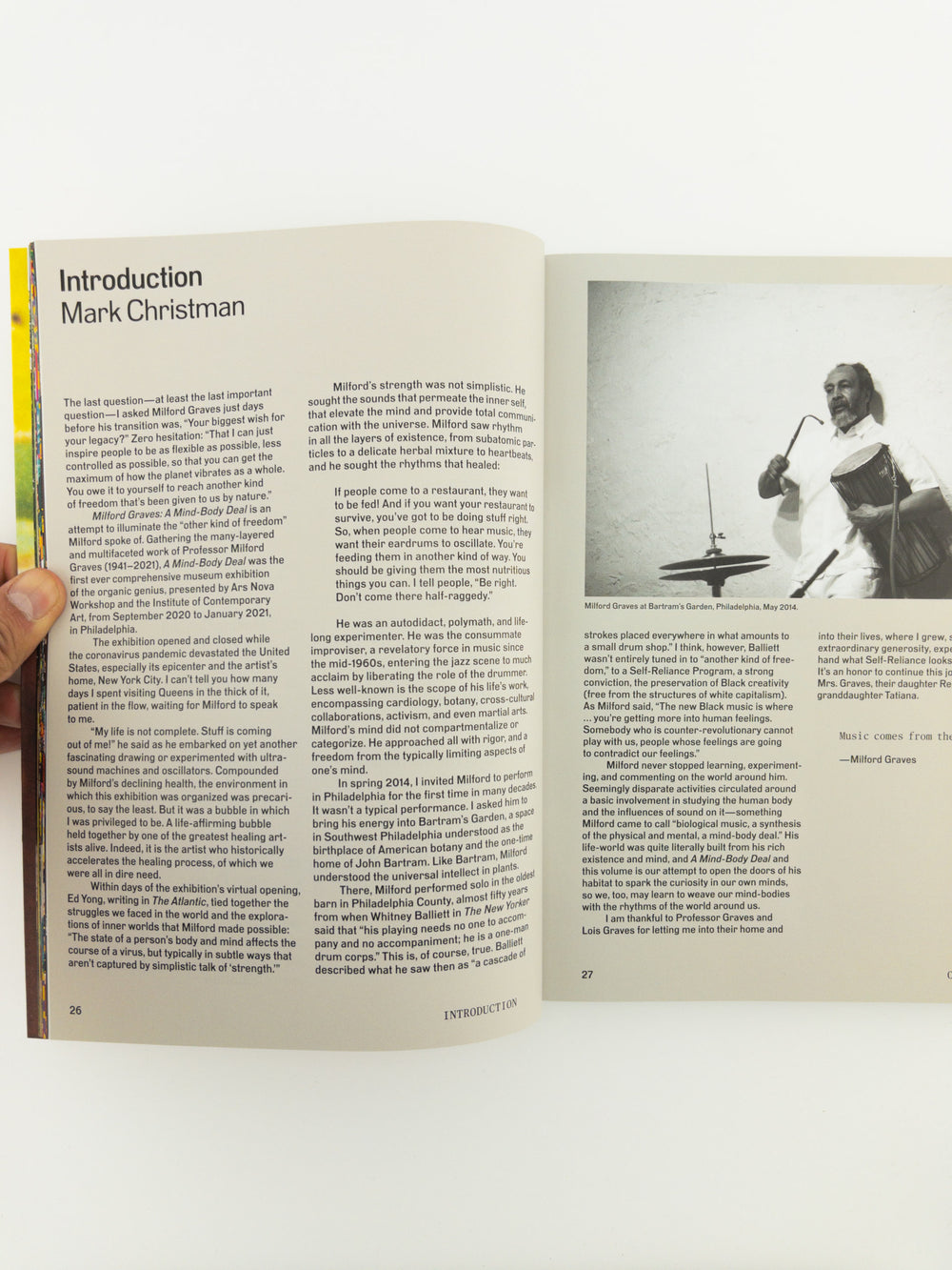 This fully illustrated catalogue includes documentation from the exhibition A Mind-Body Deal, including hand-painted album covers and posters, idiosyncratic drum sets, recording ephemera, multimedia sculptures, photographs, costumes, and artifacts from his scientific studies. This first-ever overview of Graves as a creative polymath attempts to unlock his unique habitat by gathering his intricate, multifaceted work and exploring the practices and predilections of this extraordinary jazz mind.