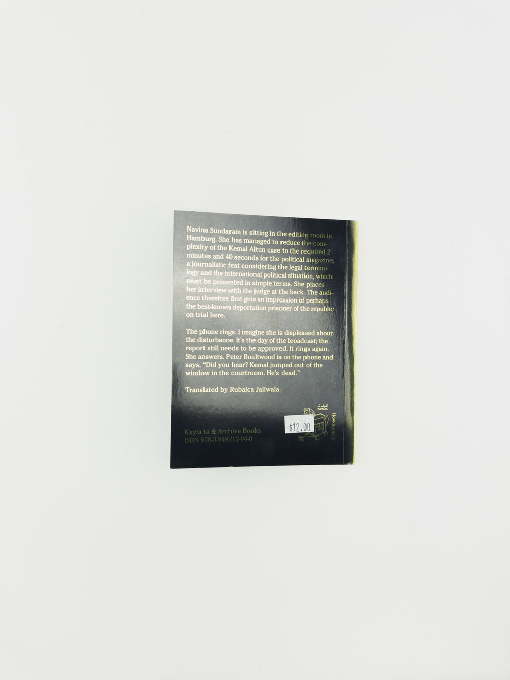 The phone rings. I imagine she is displeased about the disturbance. It’s the day of the broadcast; the report still needs to be approved. It rings again. She answers. Peter Boultwood is on the phone and says, “Did you hear? Kemal jumped out of the window in the courtroom. He’s dead.”
