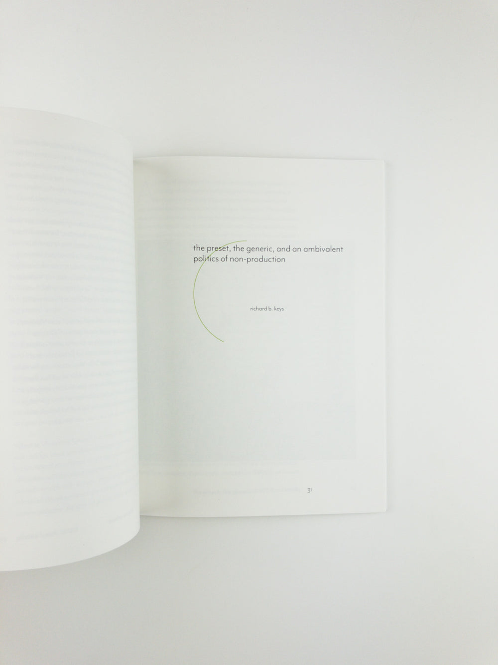 4. The Preset, the Generic, and an Ambivalent Politics of Non-Production: A Conversation 5. Between Thomas Smith and Richard B. Keys by Richard B. Keys