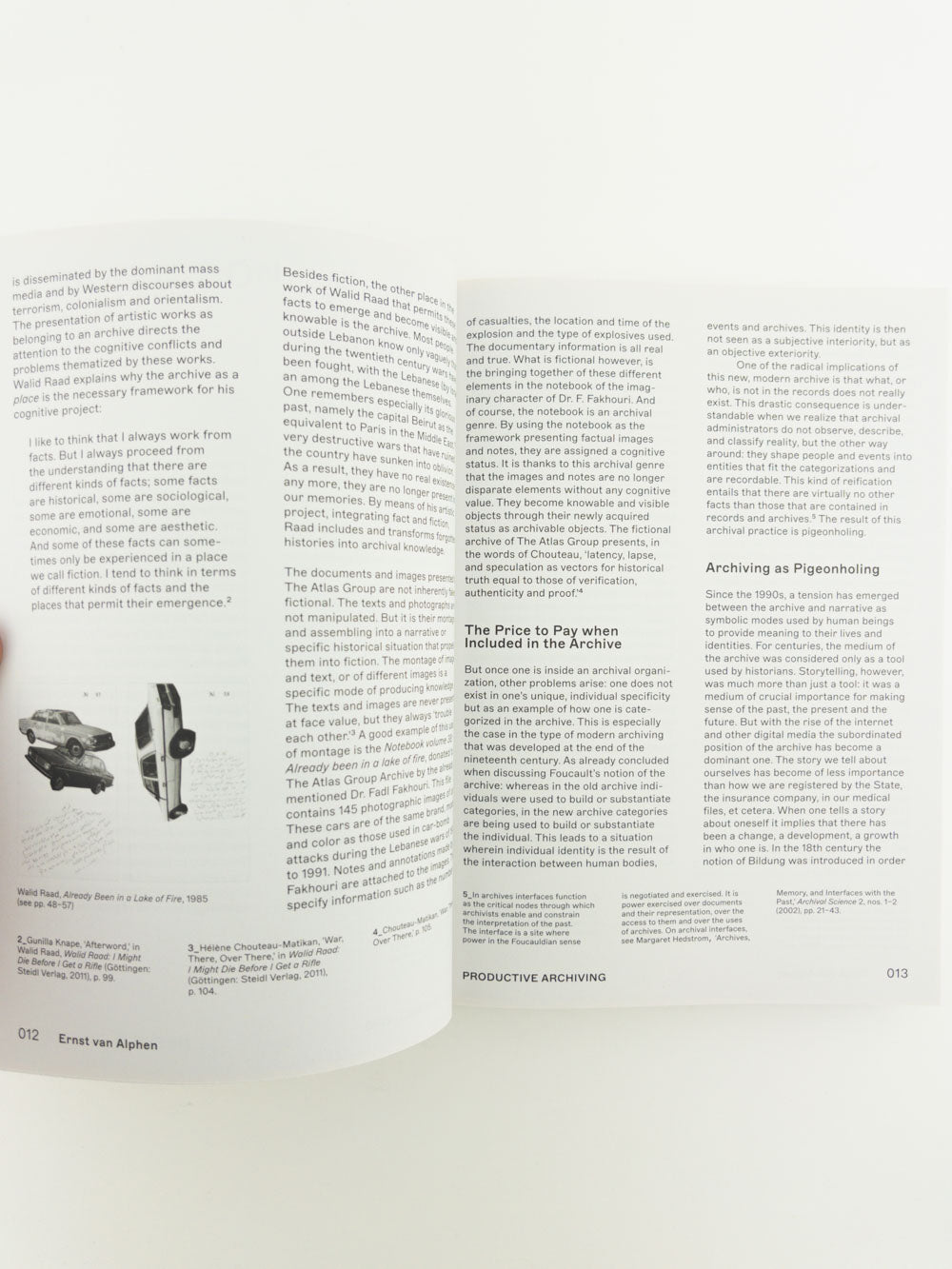 This critical anthology addresses three often-overlooked issues facing archival organizations: the question of inclusion in or exclusion from the archive; the loss of individuality and specificity in the archive; the danger of homogenization; and the risk that archiving may foster a form of pigeonholing. Since the archive is a fundamental symbolic entity, on the basis of which we organize our lives, the past, the present and the future, these issues require exploration. Productive Archiving proposes that artistic treatments of (and interventions in) archives can offer innovative ways to foster new connections and ways of thinking and organizing.