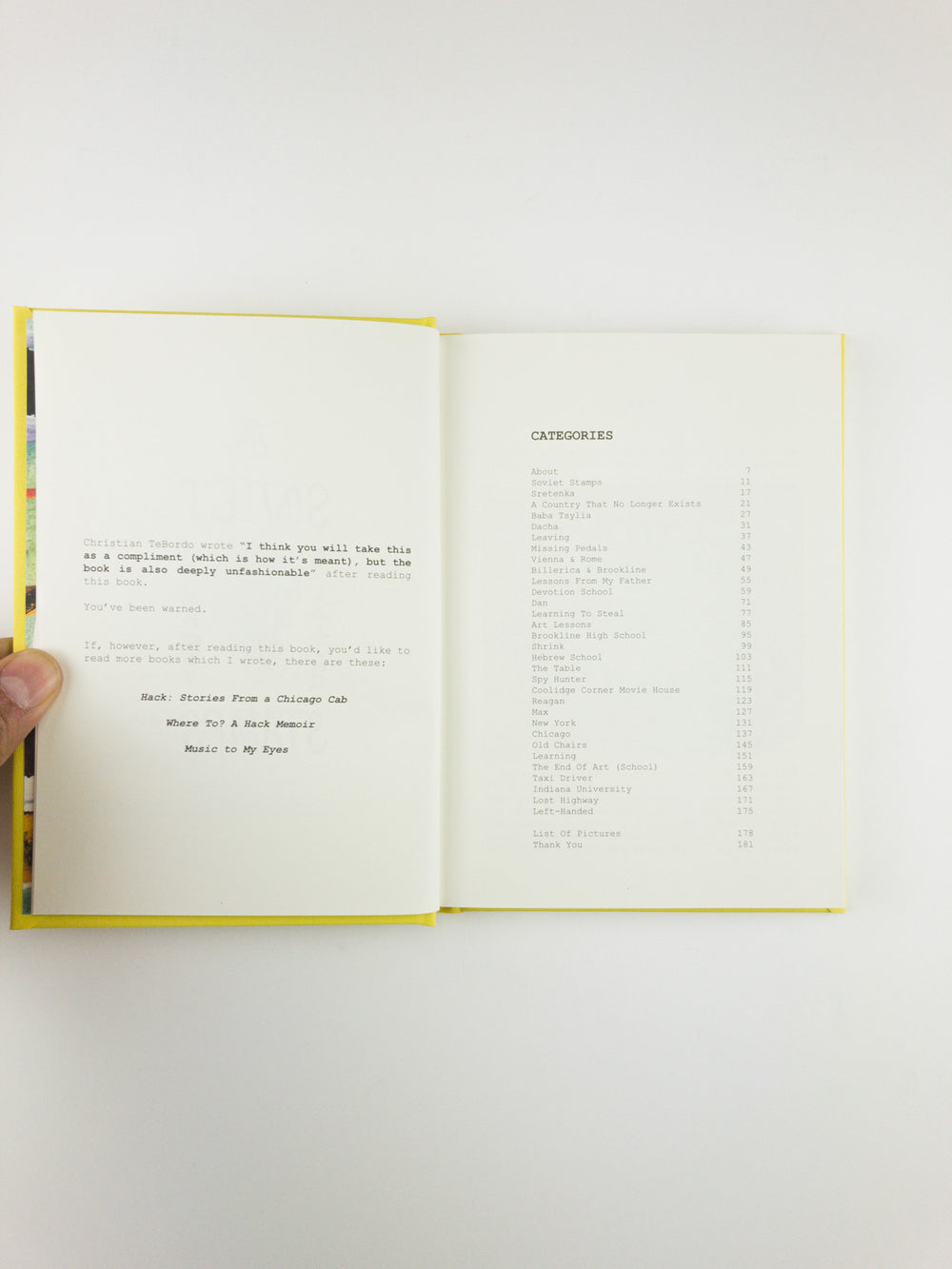 Soviet Stamps is about how Dmitry Samarov became an artist. Through written vignettes, artwork, and family photos the book charts Samarov's emigration from the USSR in 1978, on to his attempts to fit into American society and peripatetic attempts to earn a living, while continuing to create artwork.