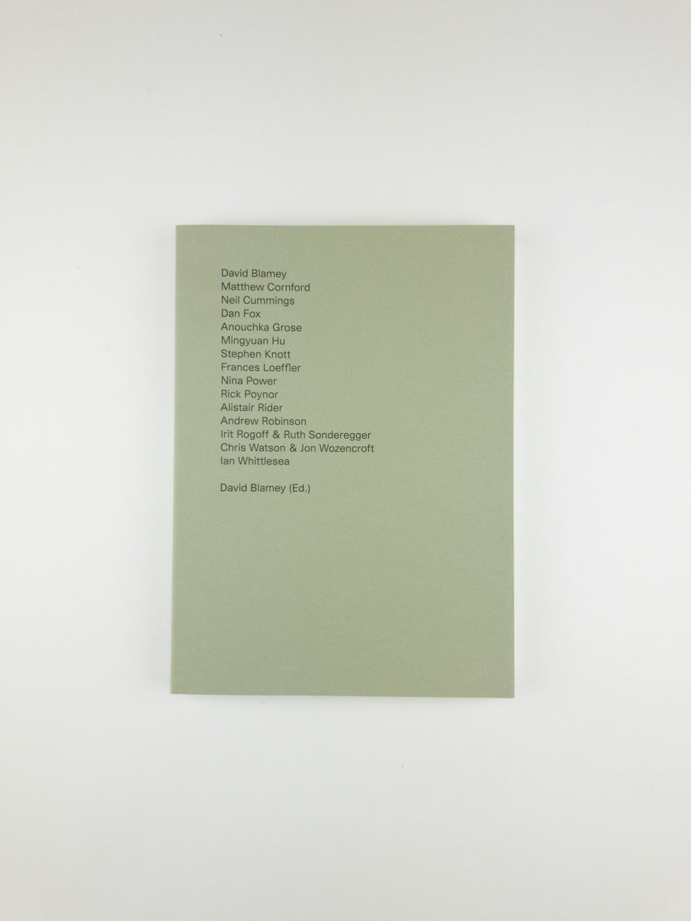 Texts by Matthew Cornford, Neil Cummings, Dan Fox, Anouchka Grose, Mingyuan Hu, Stephen Knott, Frances Loeffler, Nina Power, Rick Poynor, Alistair Rider, Andrew Robinson, Irit Rogoff and Ruth Sonderegger, Chris Watson, Jon Woze.