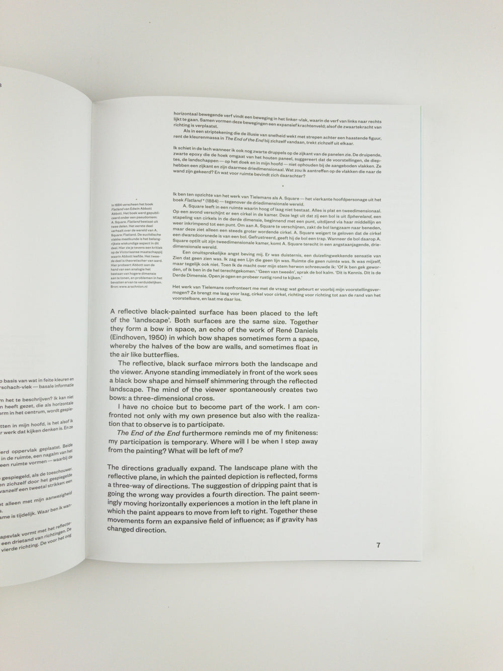 The authors of this book, Maria Barnas and Hans den Hartog Jager, describe their findings in a personal, poetic, and investigative manner; while being supported by art history references and other cultural phenomena. Their in-depth approach illustrates how this body of work lets our perpetual sense of reality slip as it invades our senses. Yet this extraordinary environment, that grounds the past in the present, is simultaneously undetermined as it feels close to our sense of particularity.