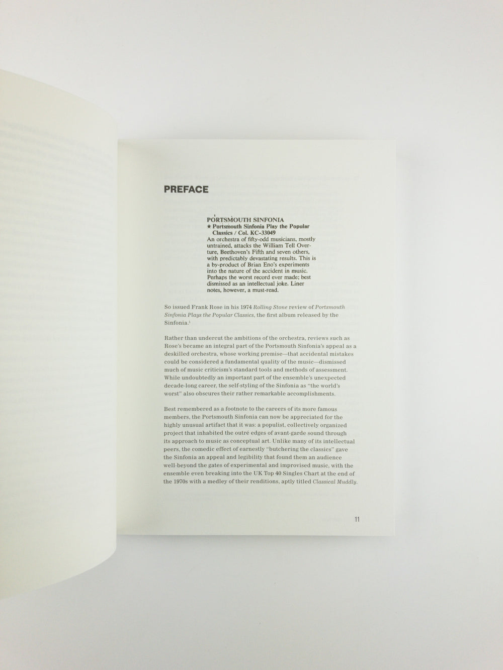 The World’s Worst: A Guide to the Portsmouth Sinfonia, the first book devoted to the ensemble, examines the founding tenets, organizing principles, and collective memories of the Sinfonia, whose reputation as “the world’s worst orchestra” underplays its unique accomplishment as a populist avant-garde project. While seemingly a niche musical anecdote, the story of the Portsmouth Sinfonia engenders wide-ranging conversations that touch upon the legacy of interdisciplinary art pedagogy, the power of popular music, the investment necessary in order to work and learn together, and the effects of destabilizing canonization. The unorthodox journey of the orchestra unfolds here through interviews with original members and their publicist/manager, magazine publications, photographs, and previously uncollected archival material, as well as an essay by Christopher M. Reeves and a foreword by Gavin Bryars.