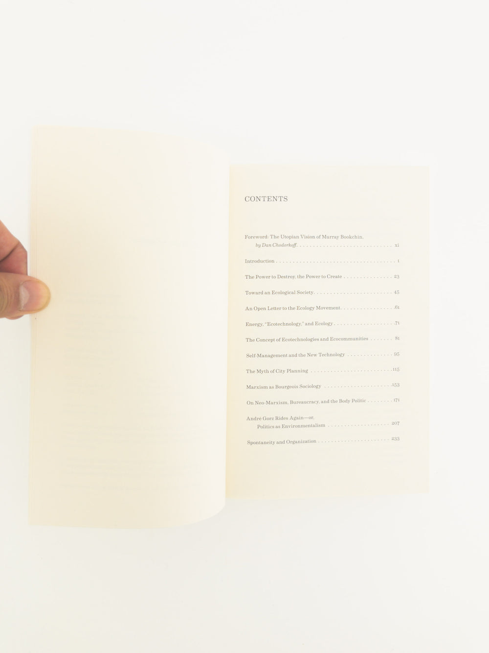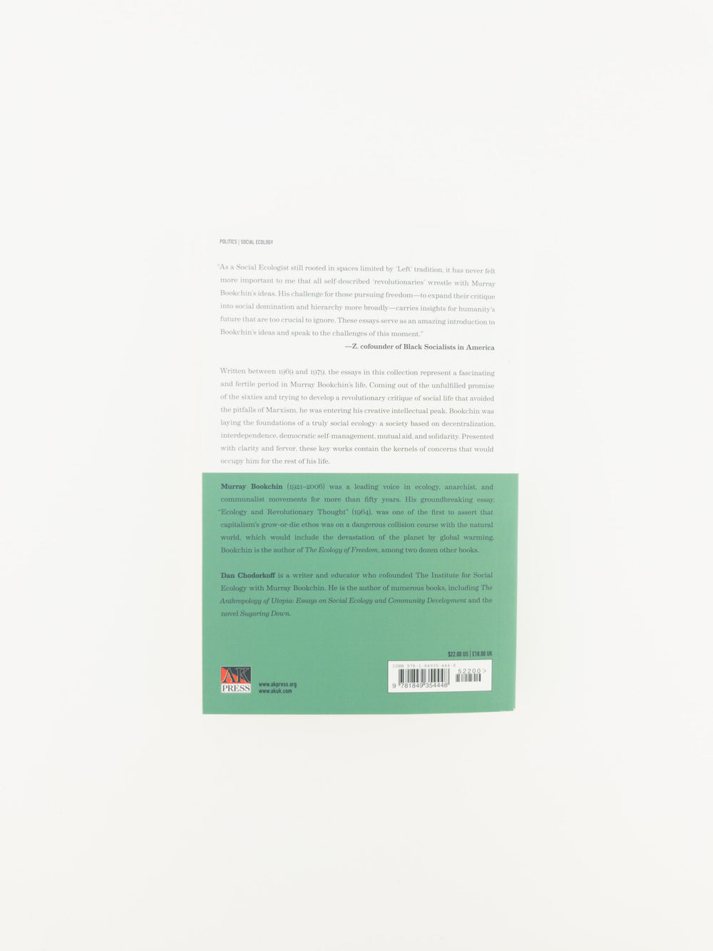 In this collection of essays, Murray Bookchin's vision for an ecological society remains central as he addresses questions of urbanism and city planning, technology, self-management, energy, utopianism, and more. Throughout, he opposes efforts to reduce ecology to a toothless “environmentalism,” a task as vital today as when these essays were first published. Written between 1969 and 1979, the essays in this collection represent a fascinating and fertile period in Bookchin’s life. Coming out of the unfulfilled promise of the sixties and trying to develop a revolutionary critique of social life that avoided the pitfalls of Marxism, he was entering his creative intellectual peak. He was laying the foundations of a truly social ecology: a society based on decentralization, interdependence, democratic self-management, mutual aid, and solidarity. Presented with clarity and fervor, these key works contain the kernels of concerns that would occupy him until his death in 2006. This edition also includes a new foreword by Dan Chodorkoff, someone who was with Bookchin at the founding of his Institute for Social Ecology and who understand his work better than anyone.