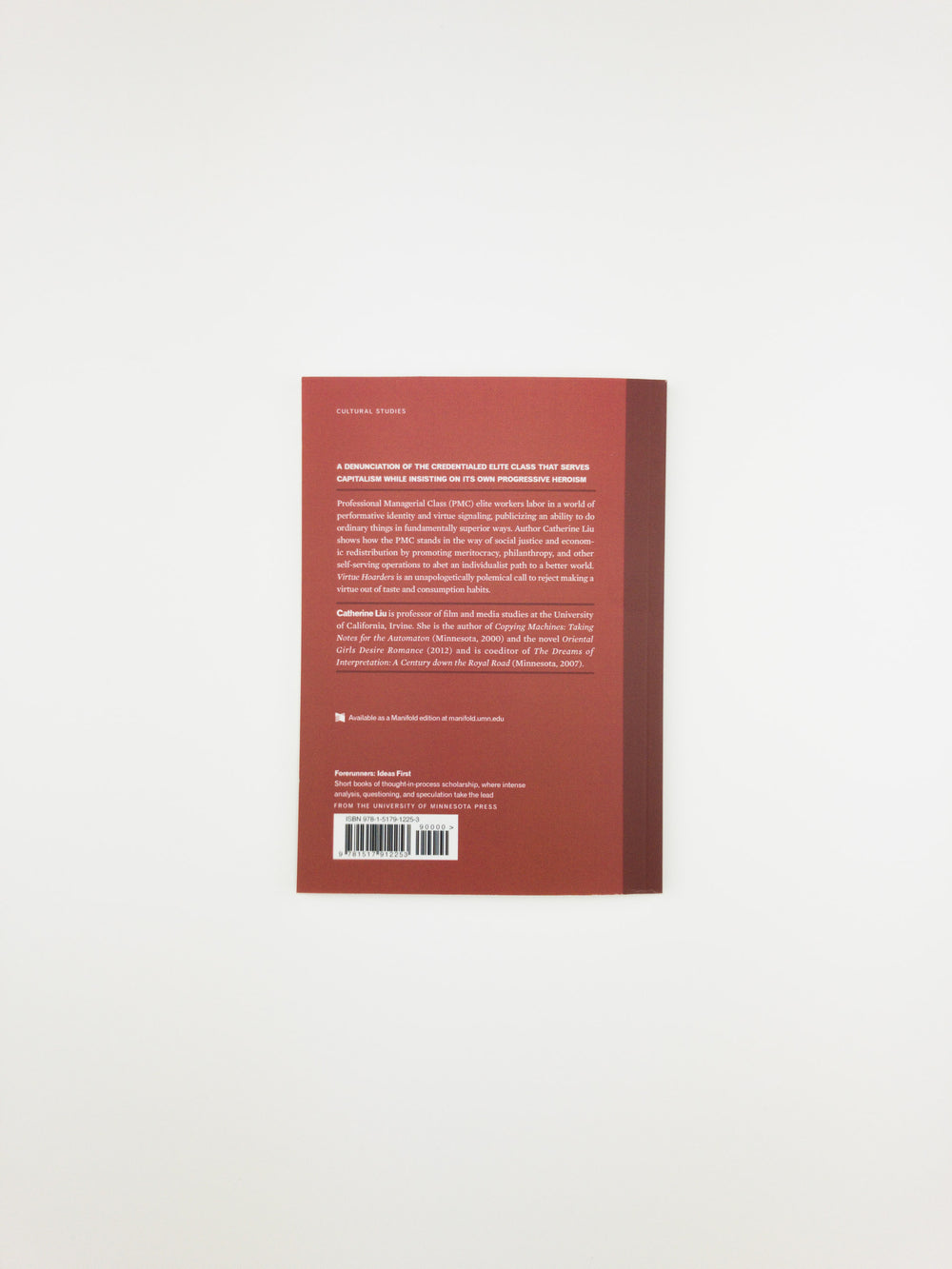 Professional Managerial Class (PMC) elite workers labor in a world of performative identity and virtue signaling, publicizing an ability to do ordinary things in fundamentally superior ways. Author Catherine Liu shows how the PMC stands in the way of social justice and economic redistribution by promoting meritocracy, philanthropy, and other self-serving operations to abet an individualist path to a better world. Virtue Hoarders is an unapologetically polemical call to reject making a virtue out of taste and consumption habits.