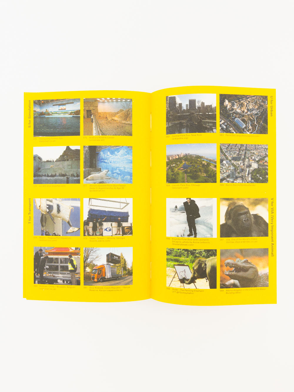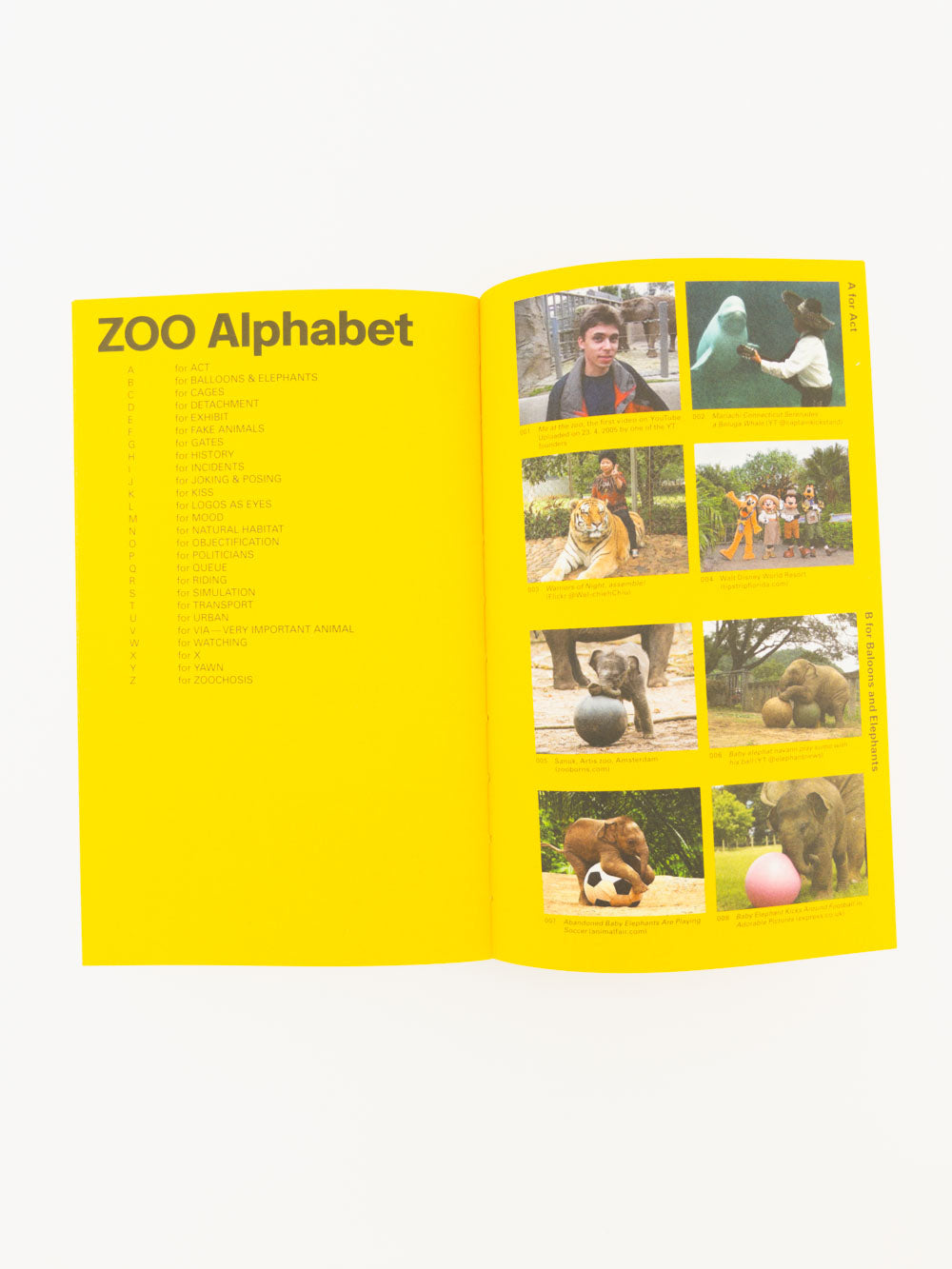 ZOO Index Reader examines the relevance of zoos and how they shape our gaze towards nonhuman animals, and by extension, ourselves and one another. Through a mixture of visual research and written contributions on the history of menageries, the confinement and privatization of land, zoo architecture, pets, the “naturalization” of animals, and the roles of zoos and animals in the history of cinema, this first volume asks: Do we need zoos? What does a meaningful coexistence with animals look like? Why have we decided to give a balloon to an elephant?