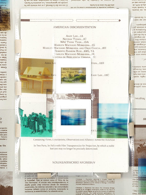 American Disorientation is a panoramic viewfinder of the American landscape under climatic and political disorientation. If our disorientation is the one thing that remains reliable, then this publication takes the disorienting effects - and affects - of the American landscape as an opportunity for its reconfiguration. American Disorientation pieces together a collective of views from activists, filmmakers, landscape architects, horticulturalists, curators, and academics from across the Americas, featuring: Abra Lee, Ben Balcom, DEGROWNYC, Dept, Marilyn Machado Mosquera, Mike Gibisser, Neyran Turan, Oficina de Resiliencia Urbana, Roberto Ransom Ruiz, Tania Tovar Torres, and Cruz Garcia and Nathalie Frankowski of WAI Think Tank. Designed in collaboration with PROPS Supply and through funding from the University of Wisconsin Milwaukee and the Harvard Graduate School of Design.