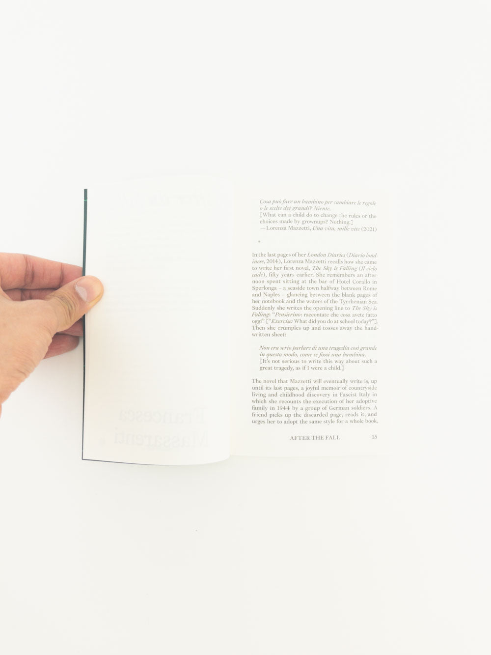 First published in 1961, Lorenza Mazzetti’s The Sky is Falling (Il cielo cade) is an impressionistic, idiosyncratic, and uniquely funny look at the writer’s childhood after she and her sister are sent to live with their Jewish relatives following the death of their parents. Bright and bucolic, vivid and mournful, and brimming with saints, martyrdom, ideals, wrong-doing and self-imposed torments, the novel describes the loss of innocence and family under the Fascist regime in Italy during World War II through the eyes of Mazzetti’s fictional alter ego, Penny, in sharp, witty (and sometimes petulant) prose. First translated into English as The Sky Falls by Marguerite Waldman in 1962, with several pages missing due to censorship, the novel has been out of print in the anglophone world for many years. This reissued text in a new translation by Livia Franchini carries over the playfulness and perverse naivete of the original Italian.