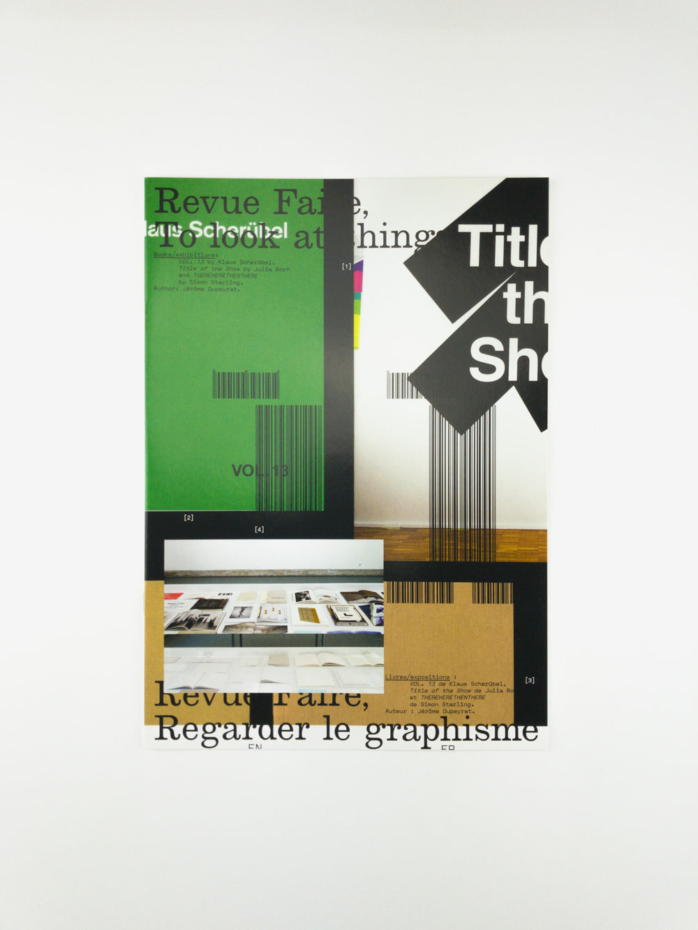 A printed exhibition: vol.19 by Klaus Scherübel, Title of the Show by Julia Born and THEREHERETHENTHERE by Simon Starling. Author: Jérôme Dupeyrat