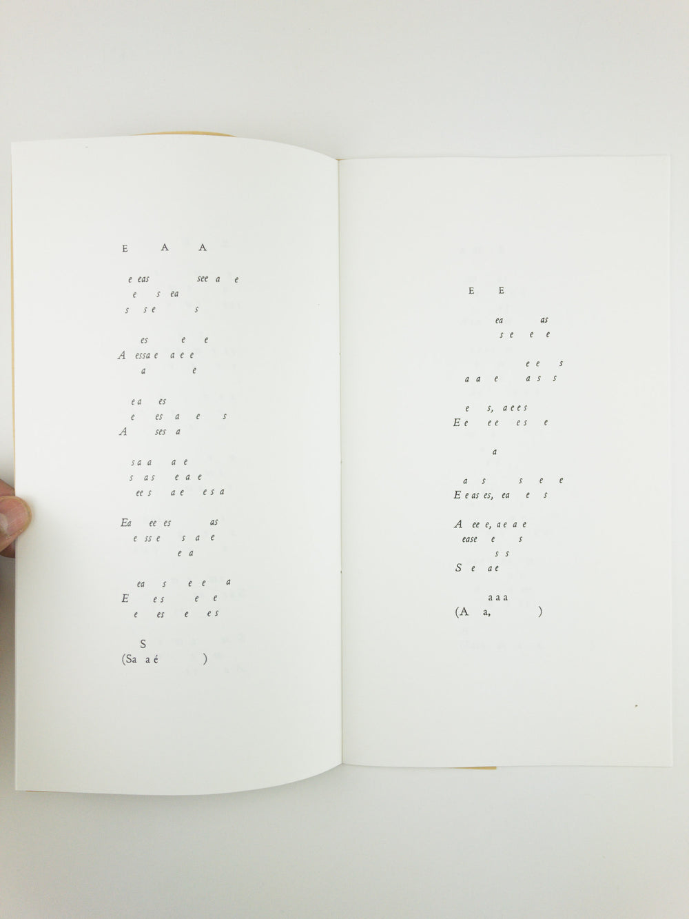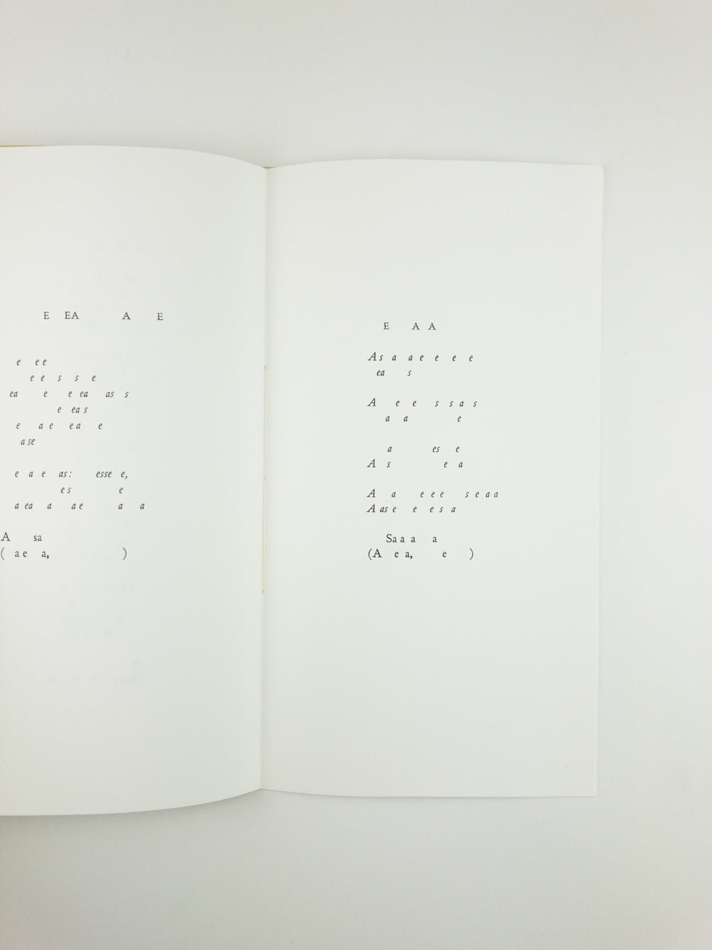 A publication featuring a series of sound-texts edited from their original forms to conjure the sea. From the book Andalusian Poems, written between the 9th and 11th centuries, translated from Spanish from the original Arabic, by Christopher Middleton and Leticia Garza-Falcon, 1993.