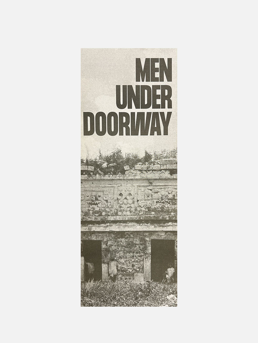 MEN UNDER DOORWAY is part of a series of publications that reframe the colonial archive from the British Museum. The men in the photos are natives whose identity wasn’t preserved by the photographer or the museum that owns their images. These locals were turned into objects to make the scale of the ancient Maya structures visible. I work against the original intention of the white European photographer, giving these anonymous natives the protagonism they never had in such “discoveries”. The narrow publication format makes the reader hold the book in such a way that the thumbs touch the men, making the Riso ink to stick to the skin, forcing the reader to touch the archive.