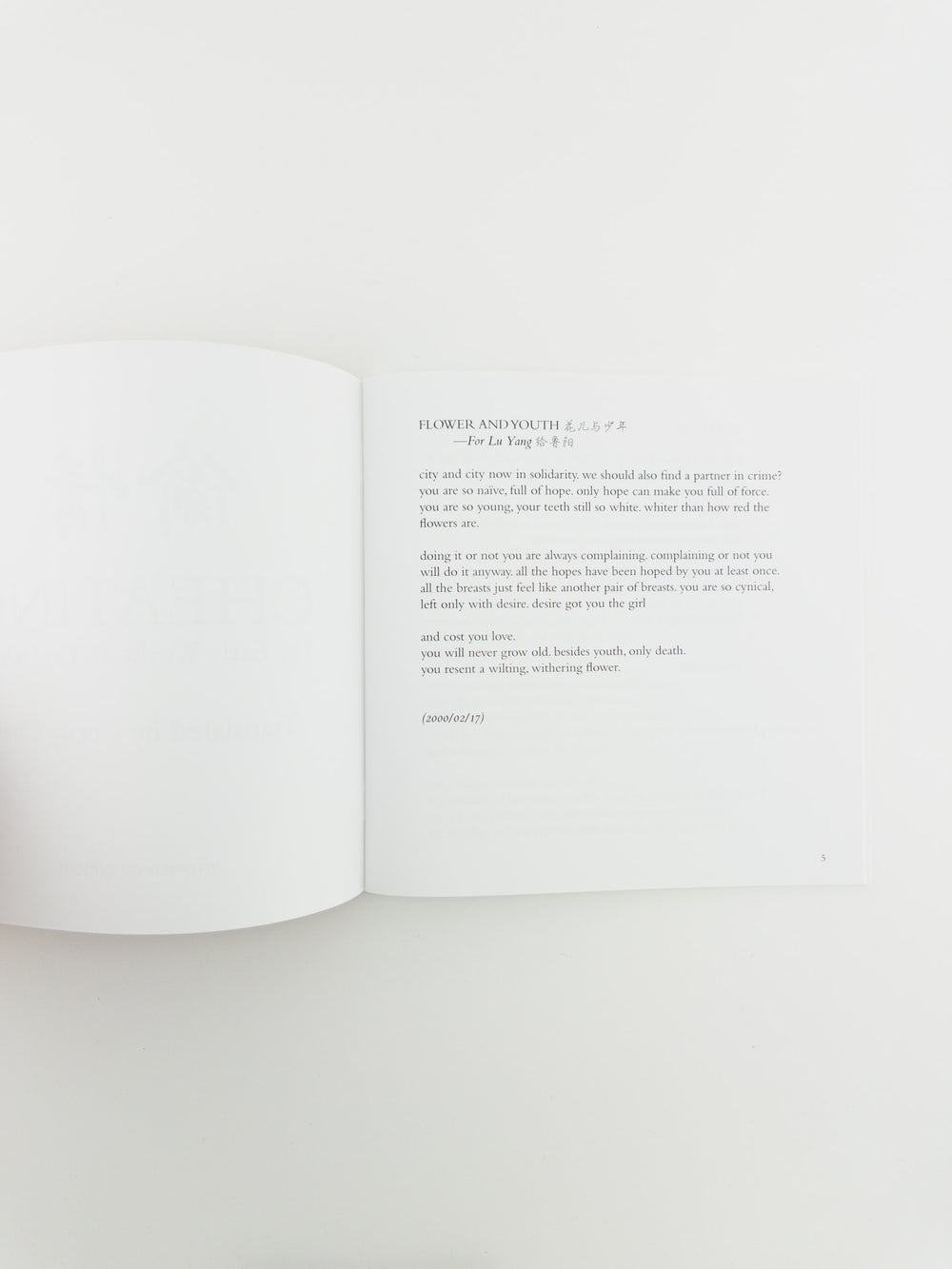 Cheating collects the early writings of contemporary Chinese poet Yin Lichuan, including three erotic poems and her novella "Cheating". A founding member of the Lower Body Poets, Lichuan's writing focuses on harrowing psychological intrigue and the devastation of desire, her verse as uninhibited as her prose. This is the first time these works have ever been translated into English.