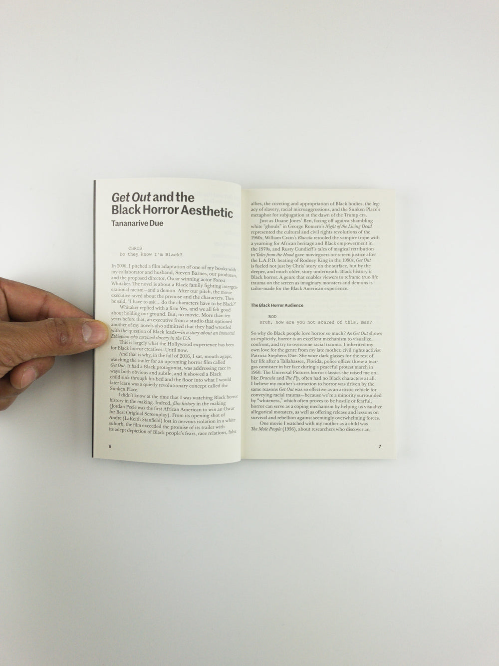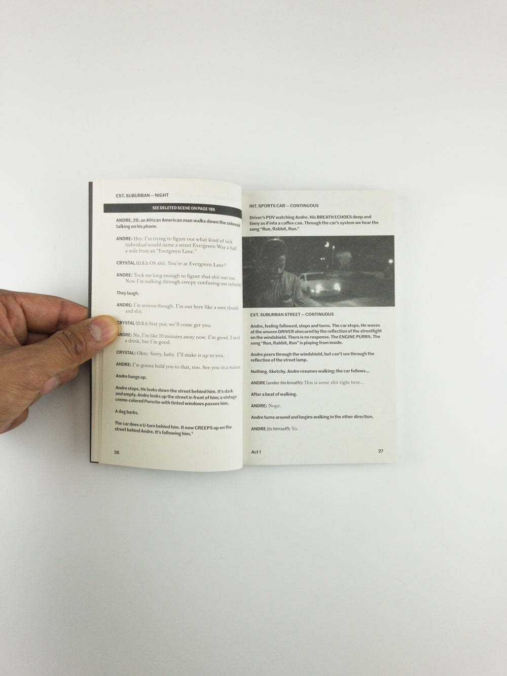 This companion paperback to the film presents Peele’s Oscar®-winning screenplay alongside supplementary material. Featuring an essay by author and scholar Tananarive Due and in-depth annotations by the director, this publication is richly illustrated with more than 150 stills from the motion picture and presents alternate endings, deleted scenes, and an inside look at the concepts and behind-the-scenes production of the film. Continuing in the legacy of 1960s paperbacks that documented the era’s most significant avant-garde films—such as Akira Kurosawa’s Rashomon, Jean-Luc Godard’s Masculin/Feminin and Michelangelo Antonioni’s L’Avventura—Get Out is an indispensable guide to this pioneering and groundbreaking cinematic work.