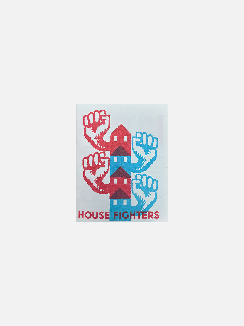 This zine collects 42 graphics of "house fighters"—anthropomorphized buildings in struggle. The houses included here are assembled from a number of sources: books, posters, zines, records, and more. The majority are from Europe, many are the unofficial logos of well-known squats.