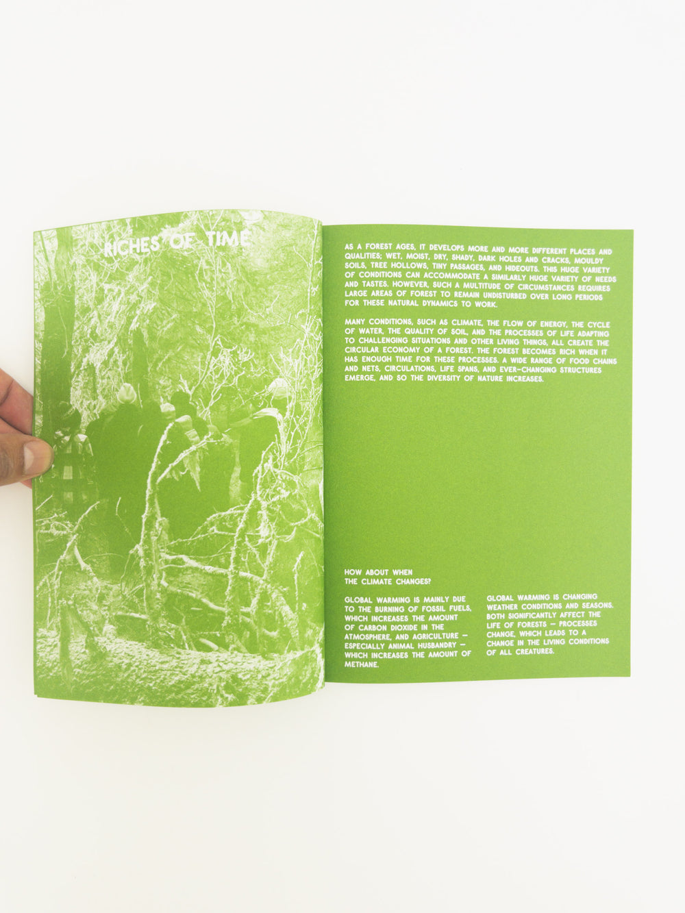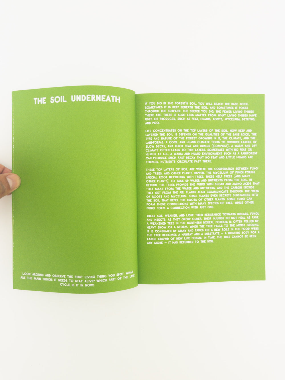 The workbook is composed of multilayered stories, workshops, and activities created in collaboration with local children in the Kainuu area, Finland. It grew from a series of workshops held in the notably large but threatened areas of old-growth forest in the northern boreal zone. In this workbook, readers can discover the forest, its ecosystem and communities, and investigate their own environment through a series of multisensory activities.