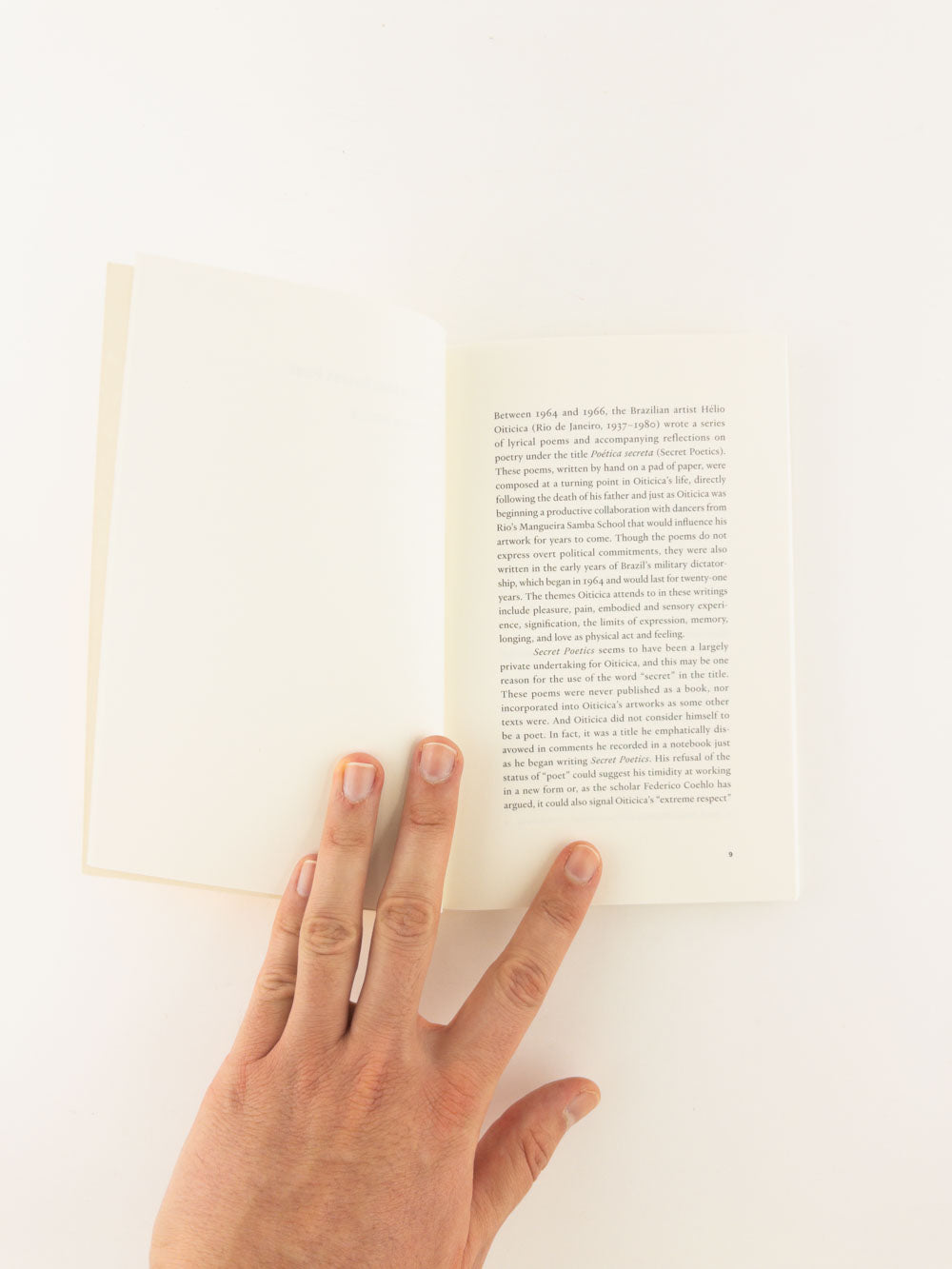Between 1964 and 1966, in the first years of Brazil’s military dictatorship, Oiticica wrote a series of lyrical poems, entitled Secret Poetics, and reflected in a private notebook on their significance for his artistic practice. Despite his global fame as a founder of the interdisciplinary movement known as neoconcretismo, his collaborations with major Brazilian artists and writers (Lygia Clark, Lygia Pape, Ferreira Gullar, etc.), and his influence across a range of disciplines (including painting, film, installation, and participatory art), Oiticica’s “secret” poems are almost unknown and have never been published as a collection. This edition, featuring the original texts in facsimile reproductions along with English translations and accompanying essays by translator Rebecca Kosick and critic Pedro Erber, uncovers the significance of poetry to Oiticica’s thinking on participation, sensation, and memory.