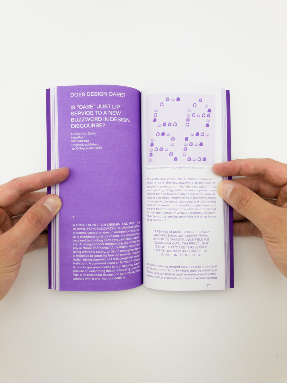 The fifth issue explores acts of leaning and how they interconnect with concepts of care and transparency in the process of making design research public.