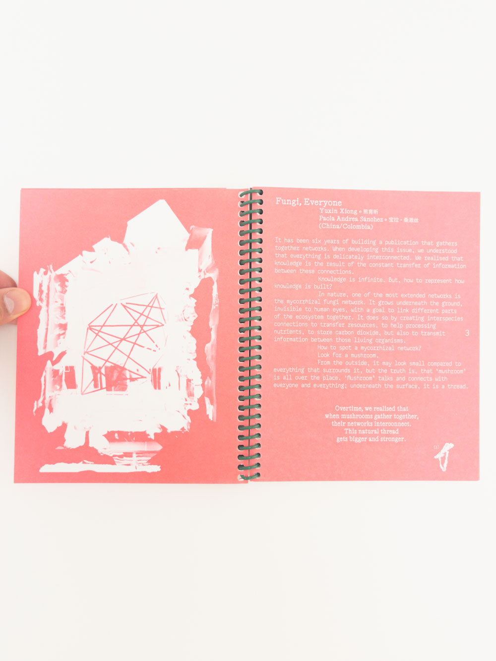 Volume 6 is inspired by the way mycorrhizal networks interconnect different species and transfer resources, applying this to the way we gather, produce, edit, and display content. We understand the production of knowledge as a symbiotic network, enabled by processes of mutual contamination. As contamination happens, information is transformed, making space for new ways of seeing complex contemporary situations.