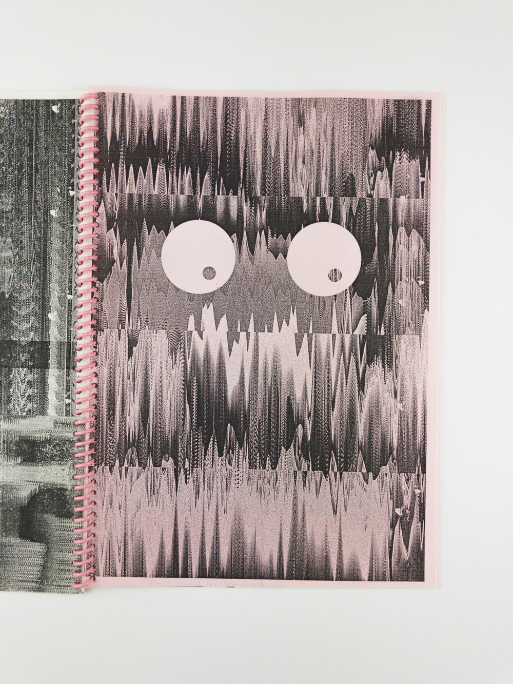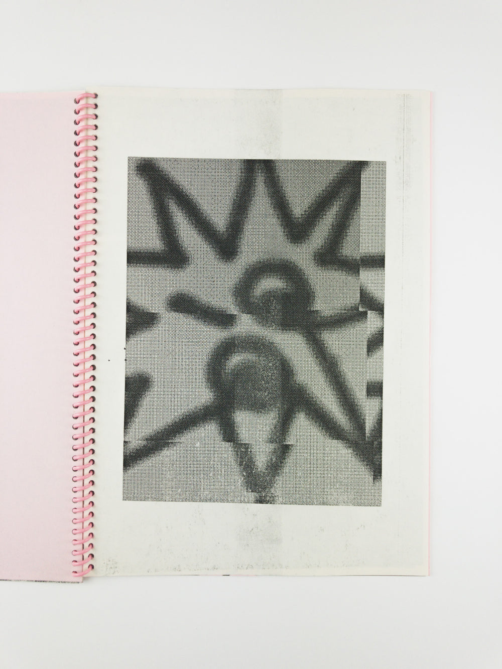 Spiral bound zine, made out of mischievous digital experiments, dissolved into a soup of black xerox toner, spread out onto a canvas of pink and creamy paper. Will definitely leave marks on your fingers and your eyes.
