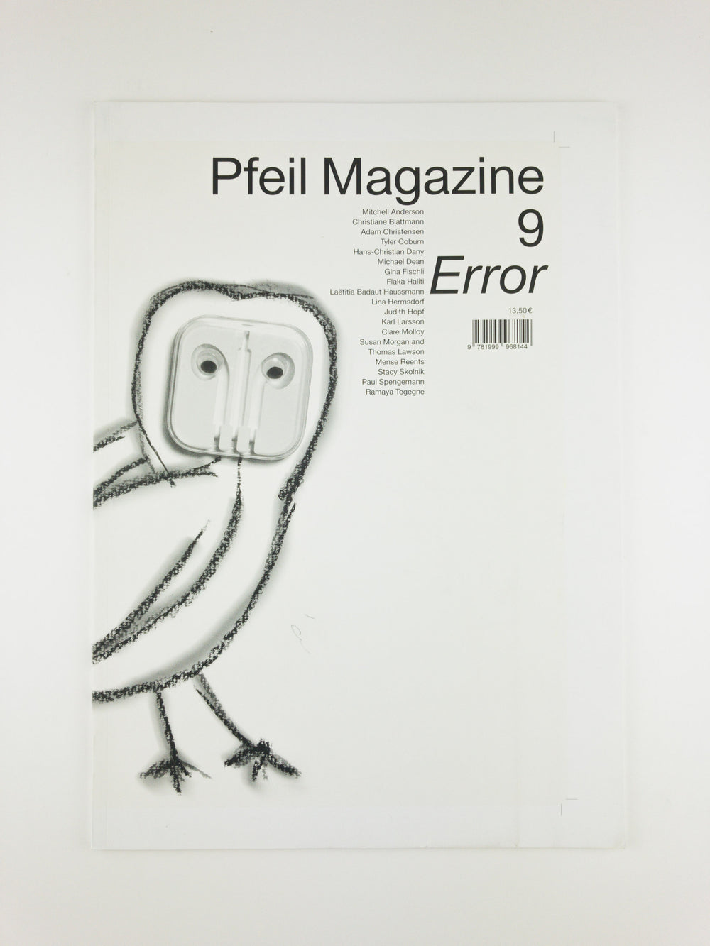 The meaning of the word ‘error’, in its origin, is neutral. In Latin ‘errare’ means both ‘to wander freely’ and ‘to wander from the right path’. After the seventeenth century, however, the word ‘error’ lost its ambiguity within English usage and became clearly understood as wrongdoing, as defect, as a way of missing a desired effect. The ninth issue of Pfeil Magazine focuses on the potential of erroneous processes to redefine the meaning of malfunction and takes a look at movements that are aimless or non-productive. Through this reflection, ‘error’ is introduced once again as the possibility of wandering freely.