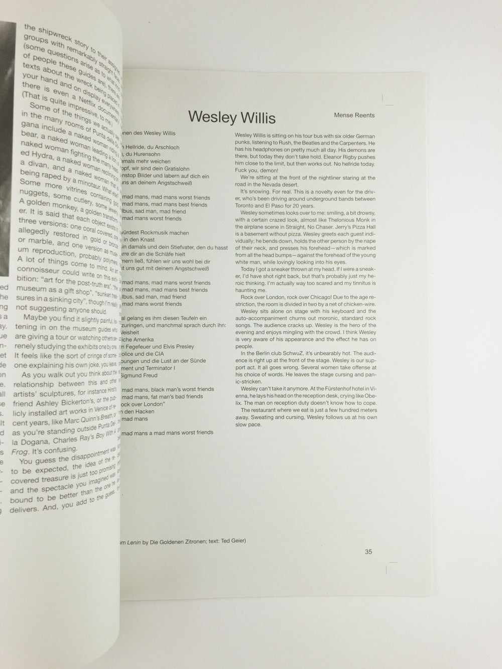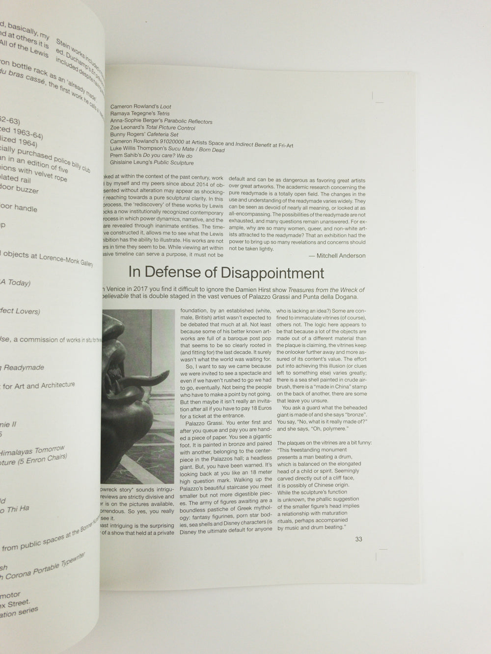 Contributions by: Mitchell Anderson, Christiane Blattmann, Adam Christensen, Tyler Coburn, Hans-Christian Dany, Michael Dean, Gina Fischli, Flaka Haliti, Laëtitia Badaut Haussmann, Lina Hermsdorf, Judith Hopf, Karl Larsson, Clare Molloy, Susan Morgan and Thomas Lawson, Mense Reents, Stacy Skolnik, Paul Spengemann, Ramaya Tegegne