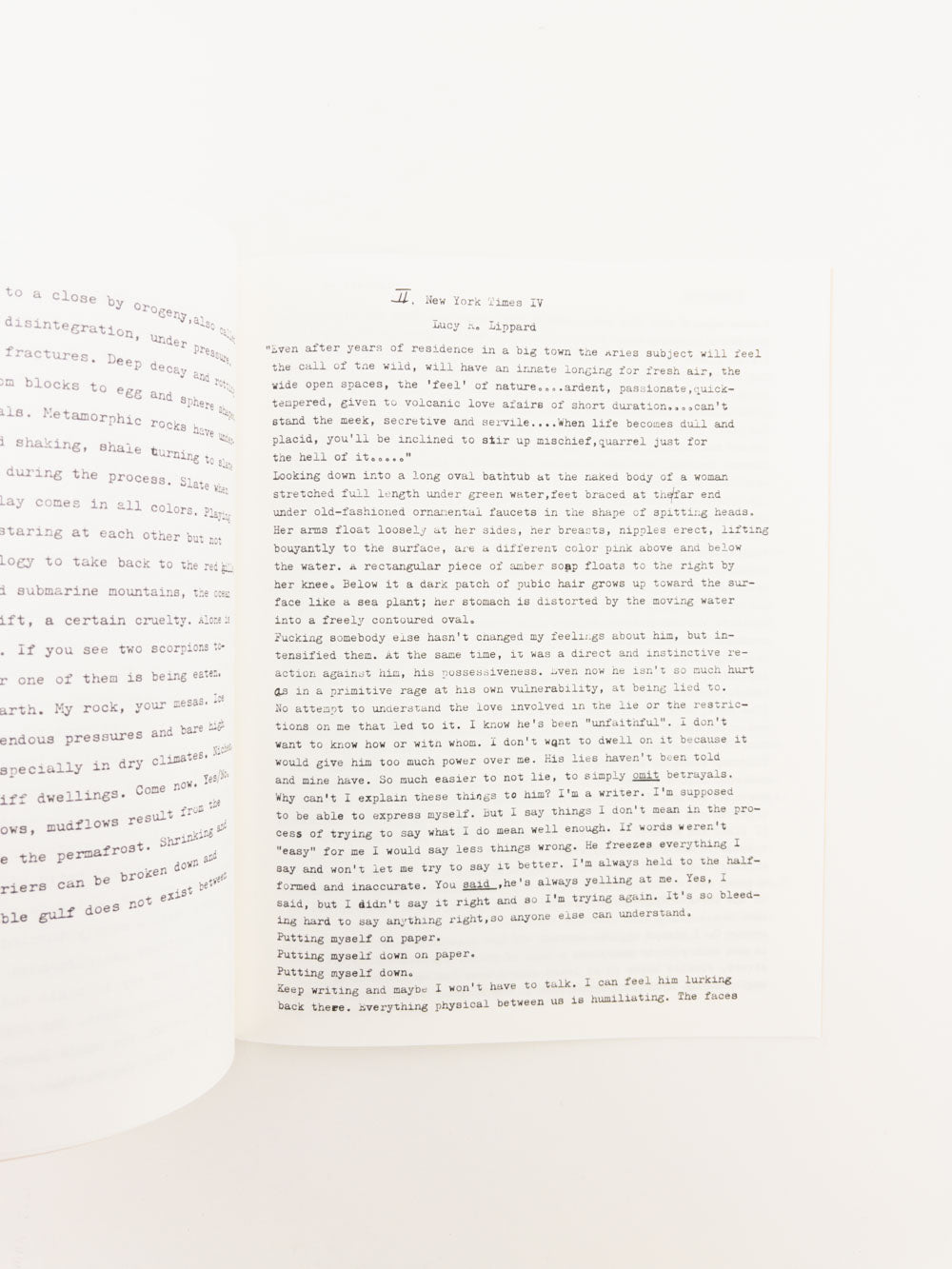 The republication of these pieces follows the recent rerelease of I See / You Mean and provides further context for the released of Brimstone this Fall, an anthology compiling over 50 of Lippard’s experimental and narrative fiction works from the early 1950s through the 1980s.