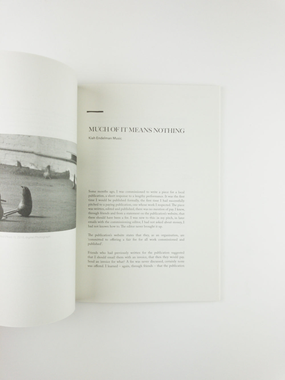 “Nothing Personal is a new magazine for art, essays and reviews, based in Glasgow. It was co-founded by Calum Sutherland, Maria Howard, Esther Draycott and Kiah Endelman Music in 2020. Normally, the caveat precedes an opinion: It’s nothing personal but… Whoever states the phrase lets themselves off the hook. Someone is told: I don’t mean to offend. Sincere or disingenuous, with hopes to hurt or to soothe, these words create a tension. It both is and isn’t personal. In terms of the magazine, this phrase introduces the contradictions inherent to criticism––the way, despite attempts otherwise, it cannot help but be revealing of both itself and its subject. In Nothing Personal, the anecdotal offers a bridge to the political, social and aesthetic, and vice versa. The writing within works at this intersection, knowing that the subjective can disguise the structural just as easily as the objective can mask the intimate."