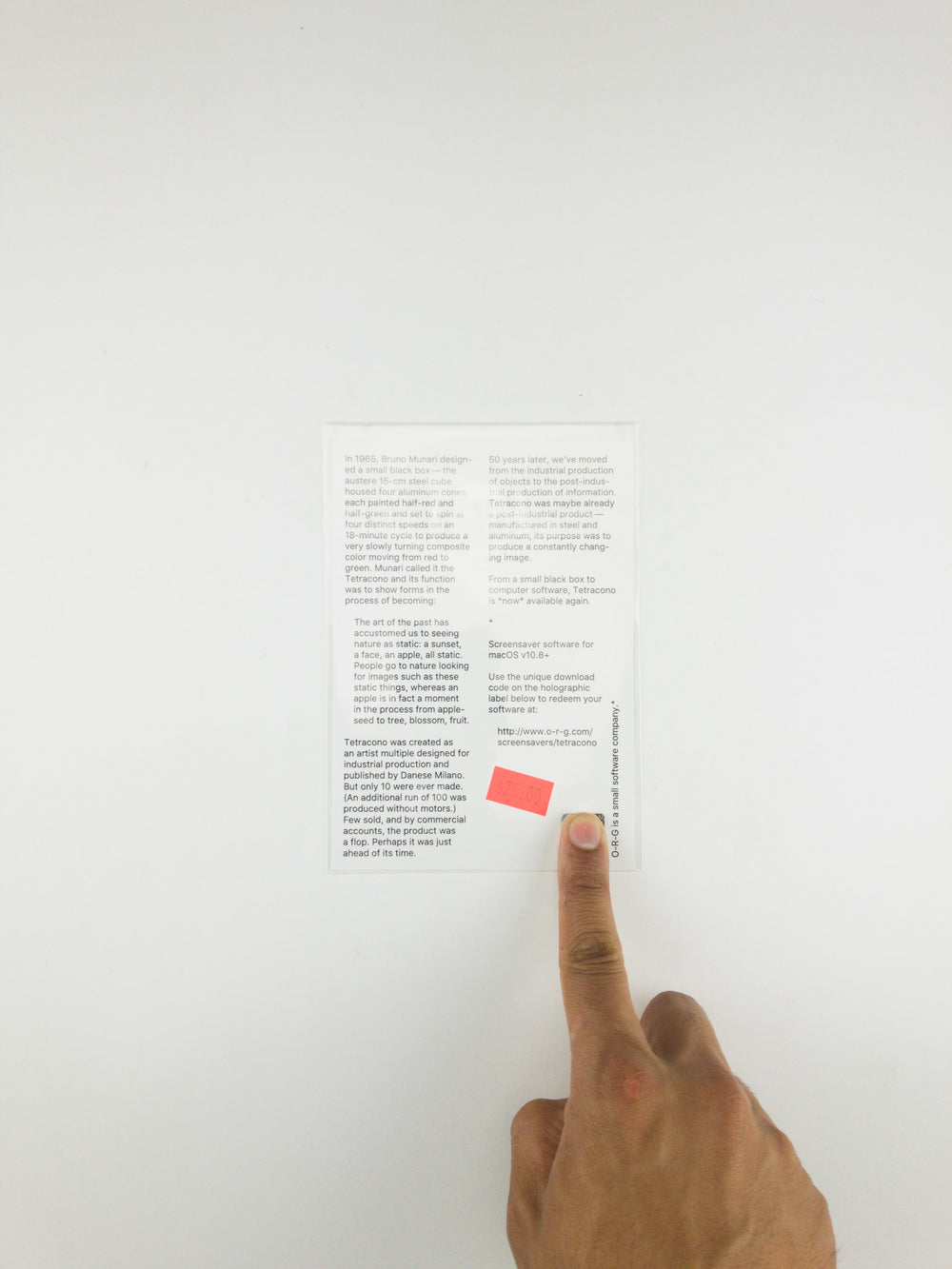Tetracono was created as an artist multiple designed for industrial production and published by Danese Milano. But only 10 were ever made. (An additional run of 100 was produced without motors.) Few sold, and by commercial accounts, the product was a flop. Perhaps it was just ahead of its time.