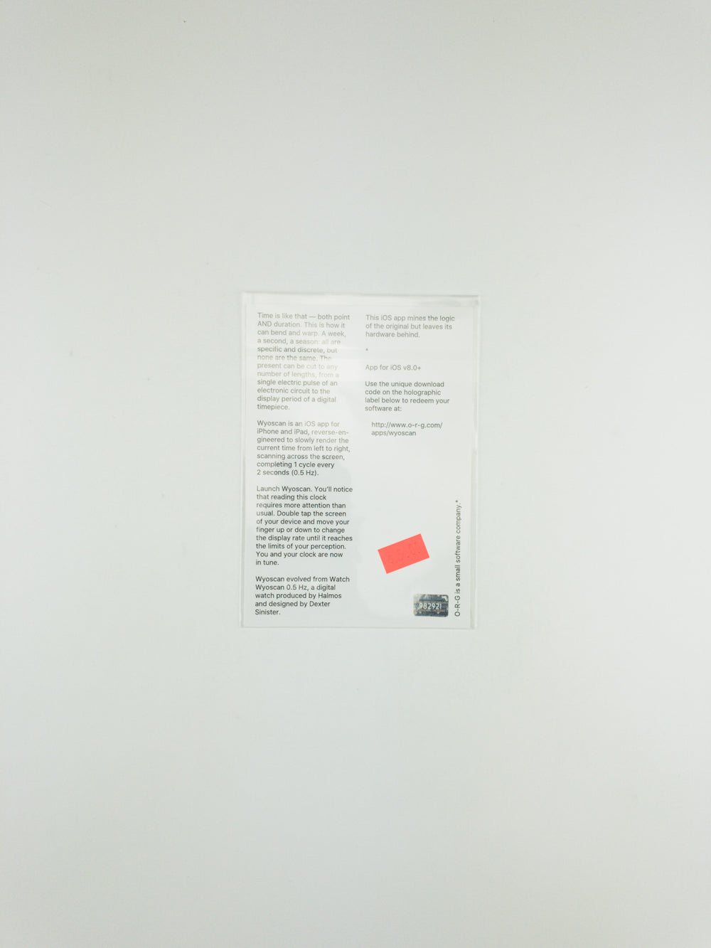 Wyoscan evolved from Watch Wyoscan 0.5 hz, a digital watch produced by Halmos and designed by Dexter Sinister. This new iOS app mines the logic of the original but leaves its hardware behind.