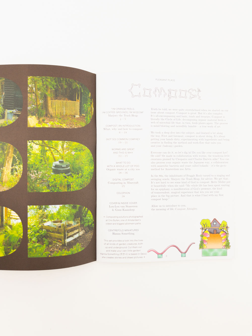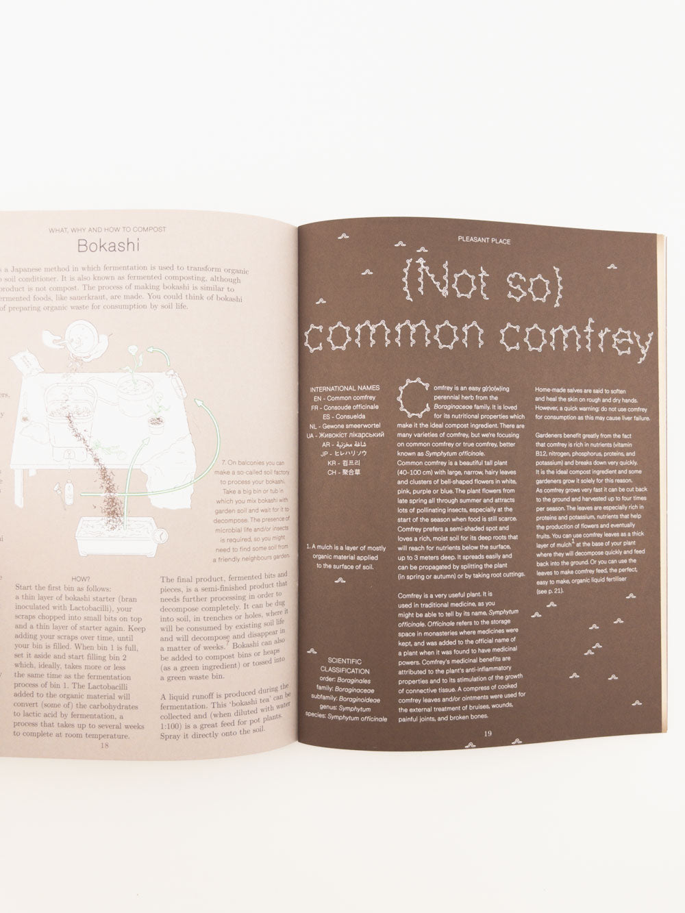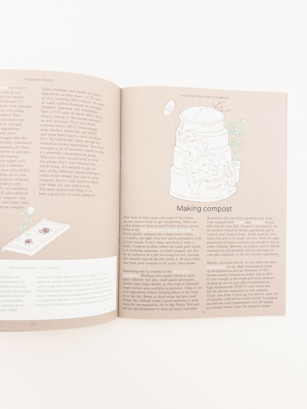 Hold your breath and take a deep dive into compost in this issue of ‘Pleasant Place’. First and foremost, compost is about doing: about getting your hands dirty, experimenting with ingredients, and being creative in finding the method that works for you and your garden. Learn what, why, and how to compost, find out why worms are so great, consider how organic waste is handled at a city zoo, and get wired with digital composting in Minecraft. ‘Pleasant Place’ is a growing collection of publications about the art of gardening that aims to inform and inspire by offering both practical and in-depth information as well as unexpected approaches to everyday garden tasks and garden design.