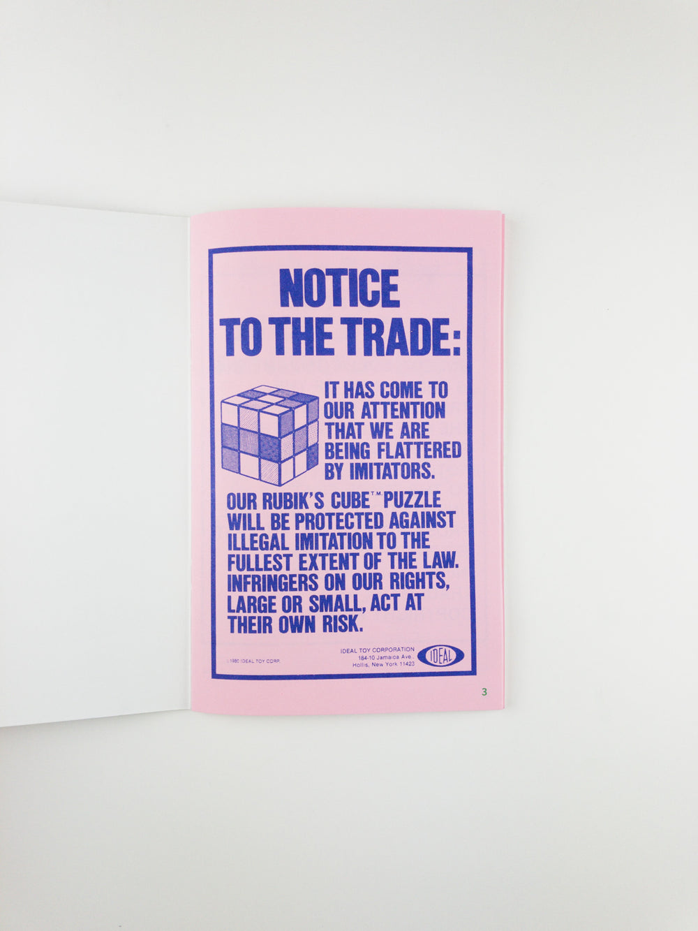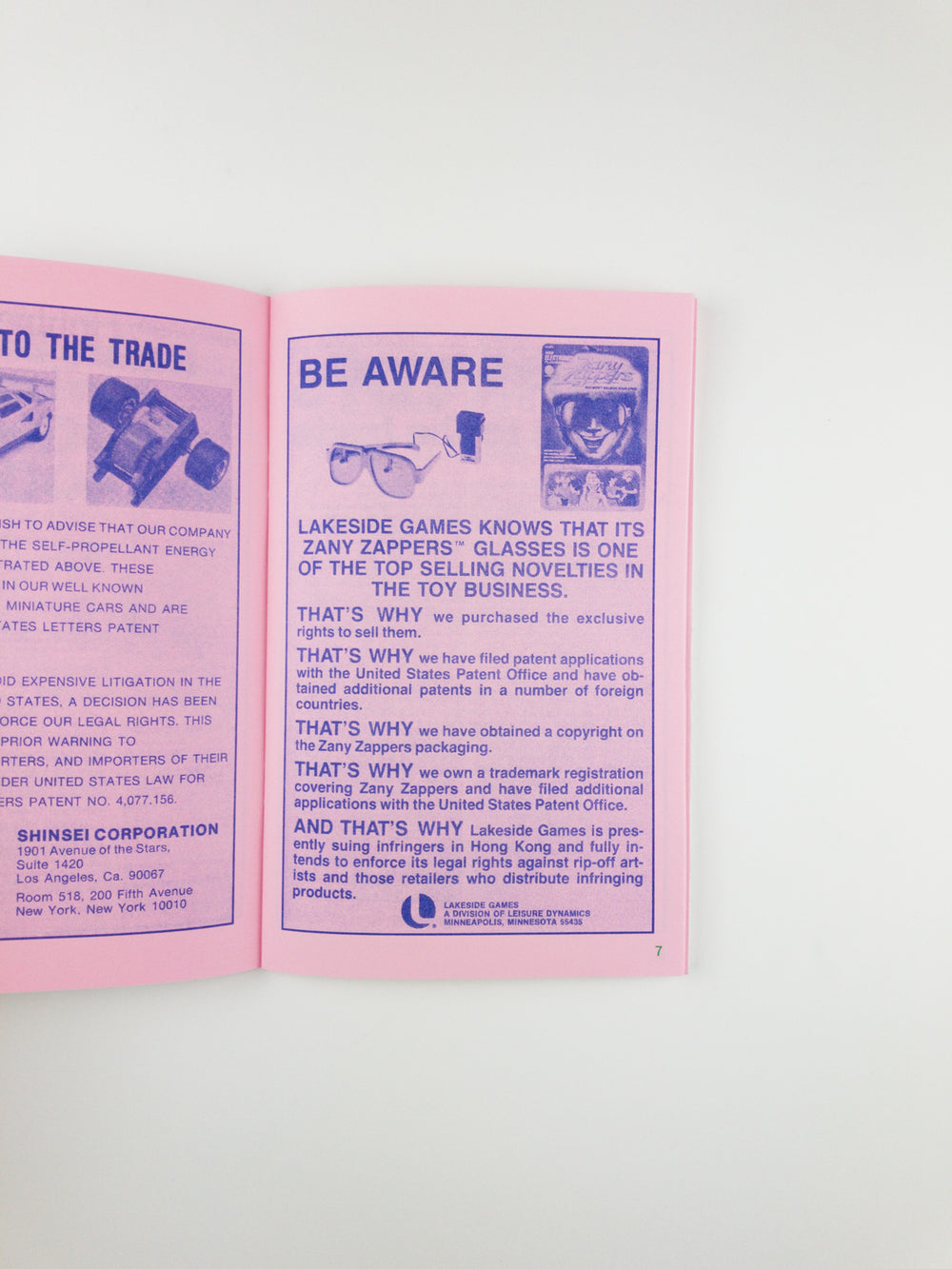 I learned about the magazine Playthings while working on Library Excavations #3, which surveys business periodicals located at the Harold Washington Library Center in Chicago. Playthings is a long-running trade magazine for the toy manufacturing and retail industry. It covers sales trends, market findings, and other matters of importance to toy makers and sellers. Playthings also regularly includes notices to the trade that highlight the darker legal corners of manufactured fun and games. This issue of Library Excavations reprints a variety of these paid notices, spanning the years 1977 through 1985. These were some of the critical toy-consuming years of my childhood. I enjoyed perusing all of the sales pitches for Six Million Dollar Man dolls, Shogun Warriors, Micronauts and other youth favorites in Playthings, but my middle-age eye is more critical and refuses to get too teary and romantic. Let’s hop on our Big Wheels and take a ride through the litigious side of the toy world. Here, every stolen idea, licensing rights violation, and overly similar detail on the body of a cuddly friend, is a hefty lawsuit just waiting to happen. — Marc Fischer