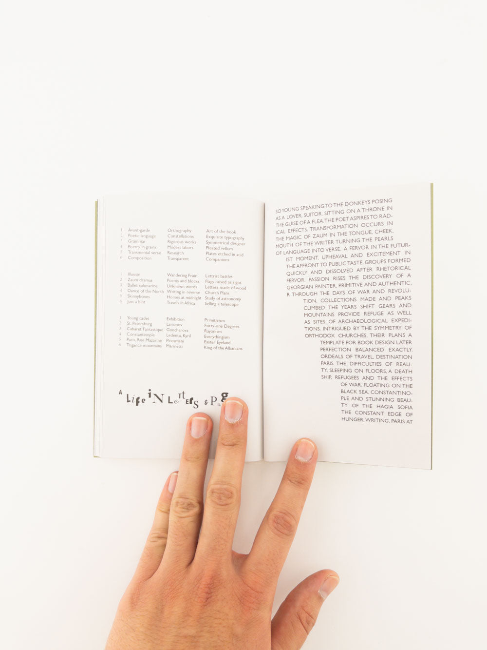 Additionally, this second volume also includes Iliazd’s letter to Ardengo Soffici from 1964, where one can read, in the most unambiguous terms, about Zdanevich’s positions against war, imperialism, and all forms of nationalism. Subtitled 50 Years of Russian Futurism, the letter to Soffici presents us with an altogether new Zdanevich – a ‘fellow traveller’ in both leftist and avant-garde circles. As well as the extended introduction and extensive annotations, the texts are further contextualised with Johanna Drucker’s visual presentation of the birth of the Iliazd cult.
