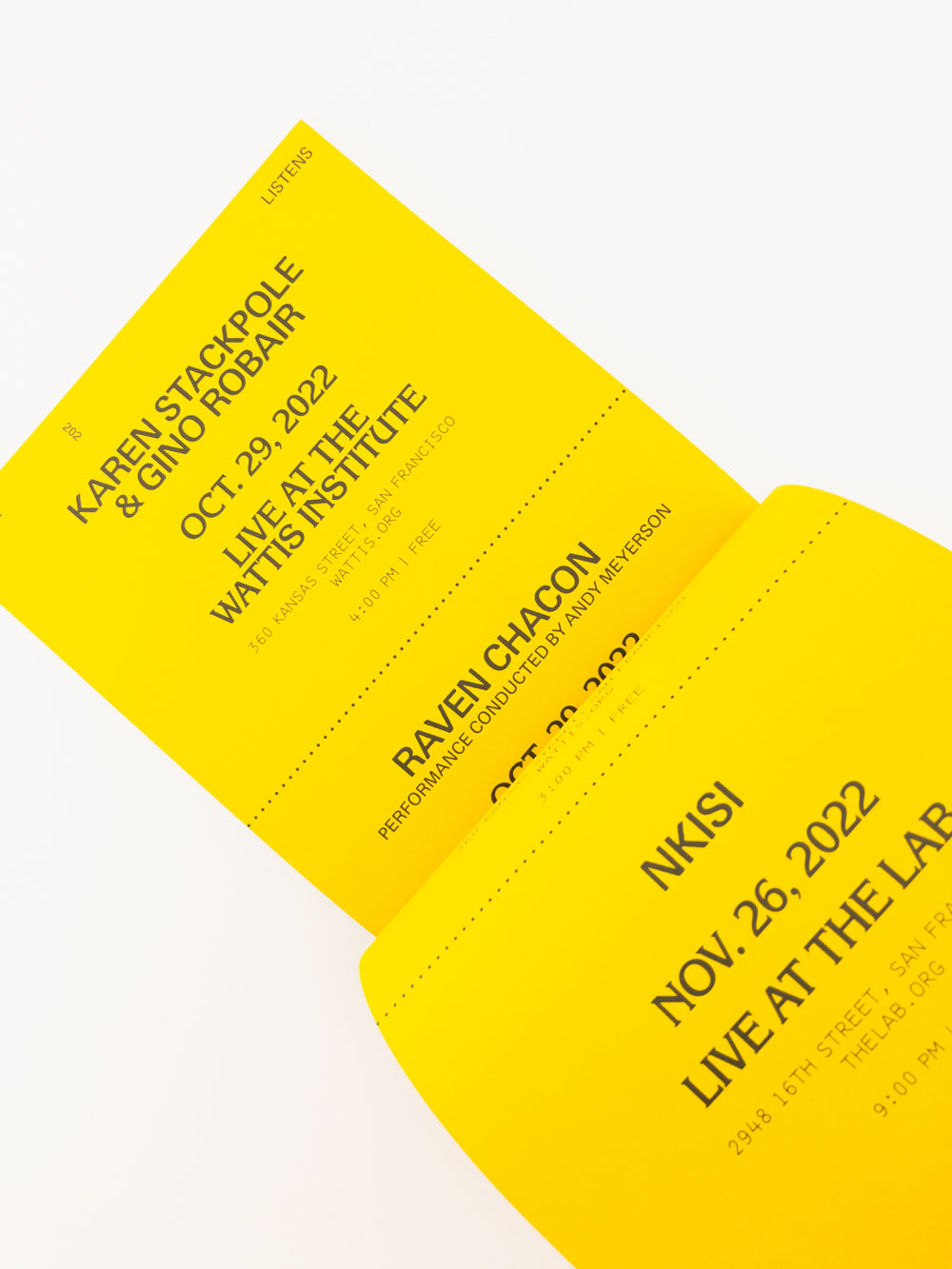This is the catalogue for the 2022 international group exhibition Drum Listens to Heart, "weaving different forms of percussion together — physical and socio-political, literal and metaphorical — and juxtaposes instances of impact and vibration with forms of control, emancipation, and community-building. It offers a framework and a vocabulary that binds art and politics to each other in percussive ways." Features the work of Luke Anguhadluq, Francis Alÿs, Marcos Ávila Forero, Raven Chacon, Trisha Donnelly,Em’kal Eyongakpa, Theaster Gates,Milford Graves, David Hammons, Susan Howe & David Grubbs, NIC Kay, Barry Le Va, Rose Lowder, Lee Lozano, Guadalupe Maravilla, Harold Mendez, Rie Nakajima,The Otolith Group, Lucy Raven, Davina Semo, Michael E. Smith, Consuelo Tupper Hernández, Haegue Yang, and David Zink Yi.