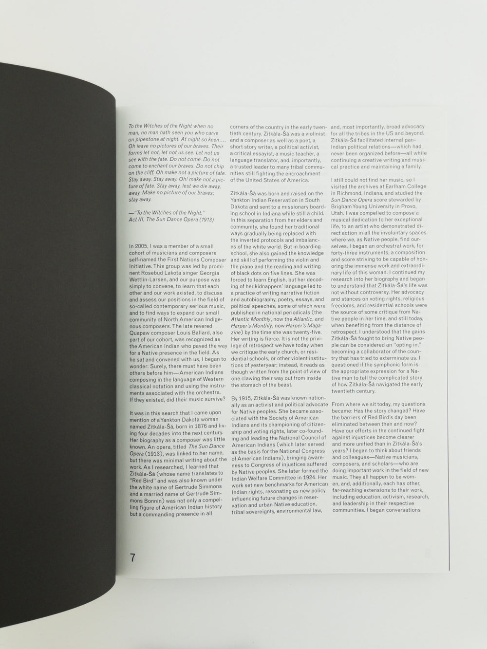 Paying tribute to Yankton Dakota writer, musician, and activist Zitkála-Šá (b.1876), this publication is structured through a series of scores for thirteen contemporary female Indigenous performing artists: Laura Ortman, Cheryl L’Hirondelle, Suzanne Kite, Barbara Croall, Jacqueline Wilson, Autumn Chacon, Heidi Senungetuk, Ange Loft, Joy Harjo, Carmina Escobar, Olivia Shortt, Candice Hopkins, and Buffy Sainte-Marie. The book is supplemented by texts by each artist and a contextualizing essay by Chacon.